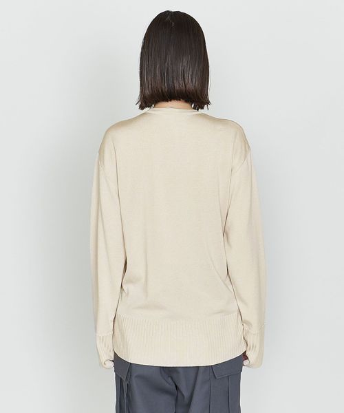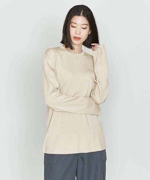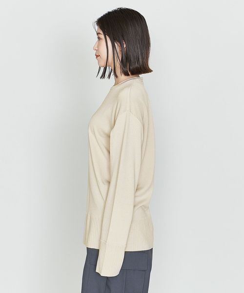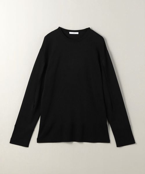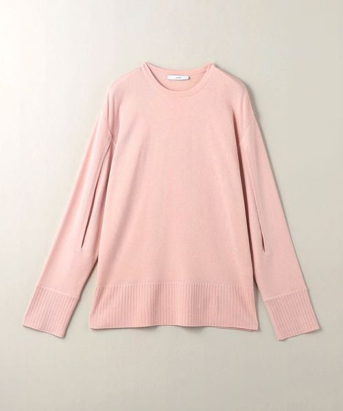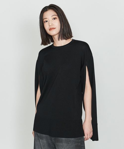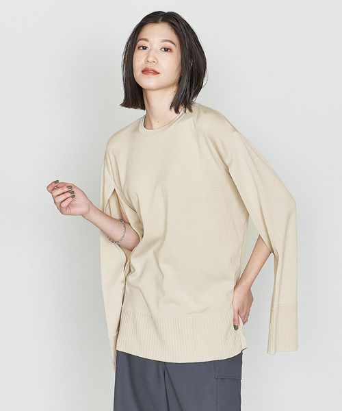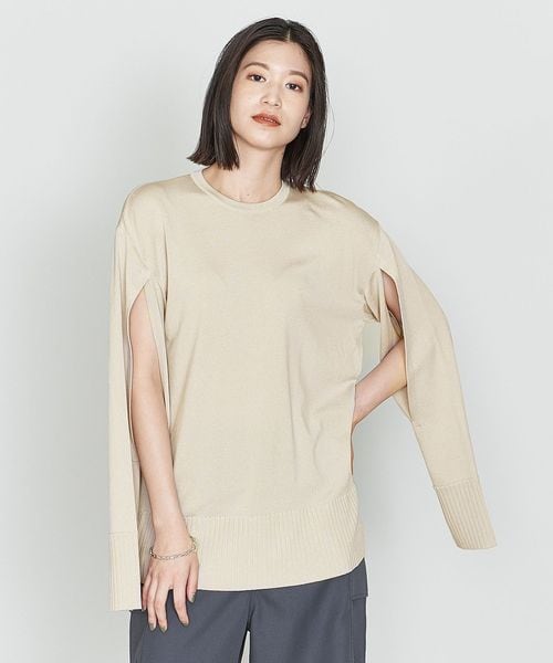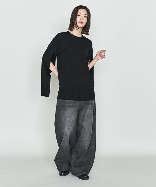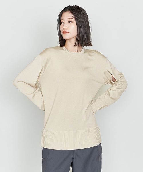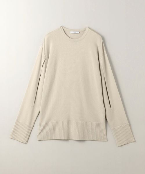 袖のスリットデザインが軽やかな着こなしを演出してくれるクルーネックニット。