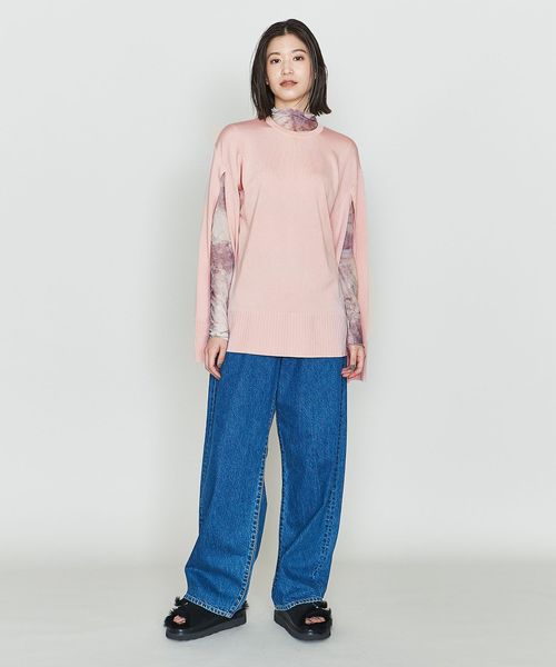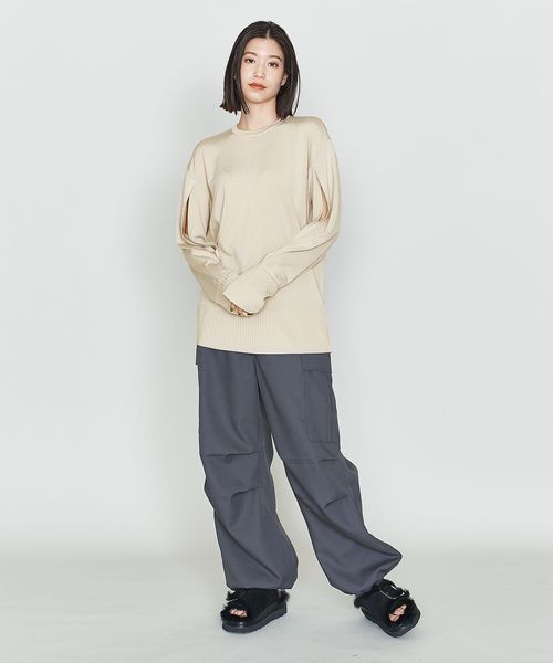 <ASTRAET>16G スリットスリーブ クルーネックニット