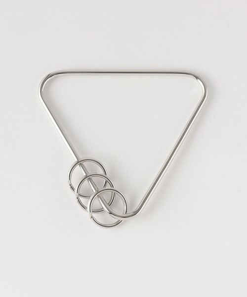 真鍮にロジウムメッキを施したシルバーカラーのキーリングホルダー。
