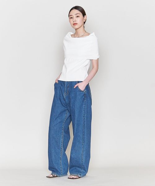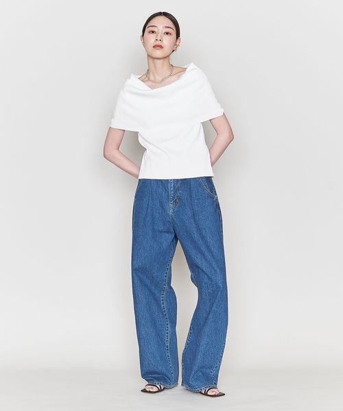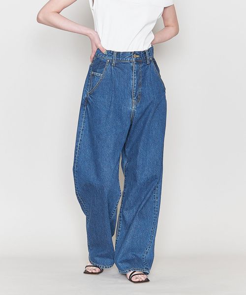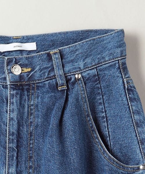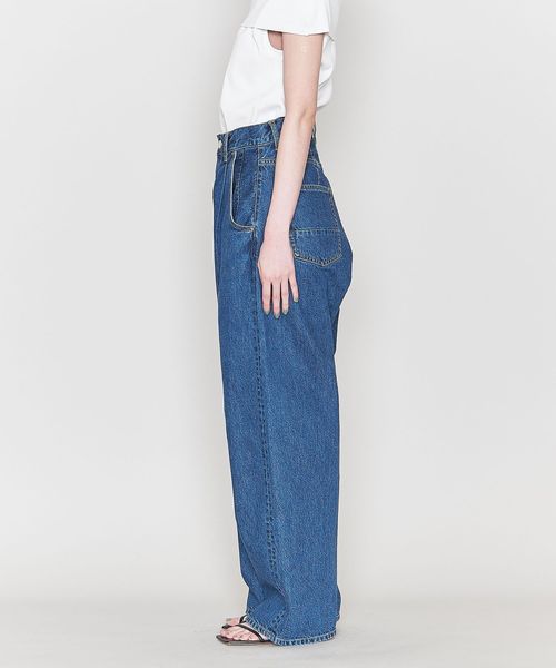 タックデザインがマニッシュな雰囲気のワイドデニムパンツ。