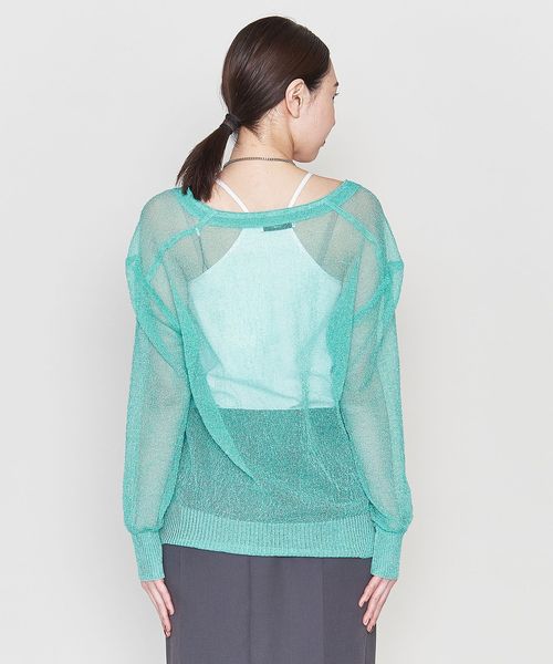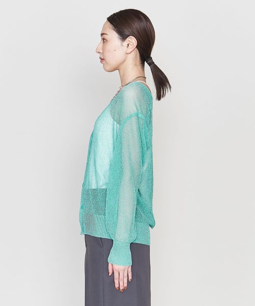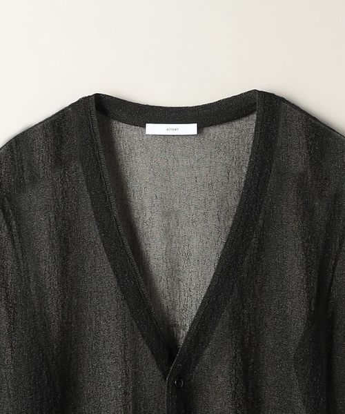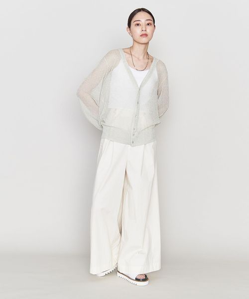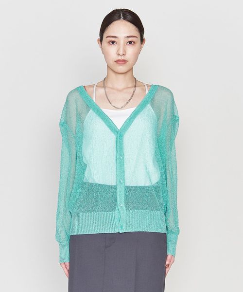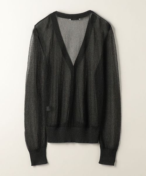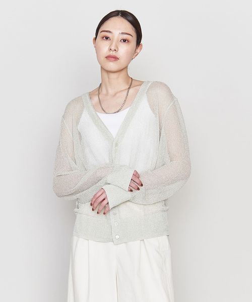 シンプルな着こなしに羽織るだけで華やかな装いを楽しめるラメのカーディガン。