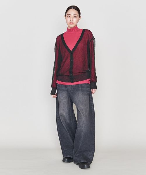 ドロップショルダーの少しゆとりを持たせたシルエットのVネックカーディガン。