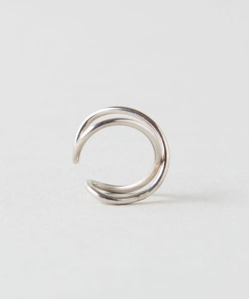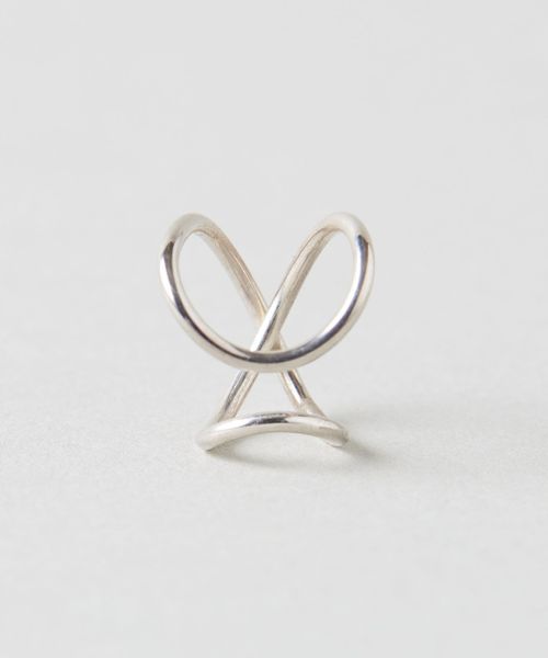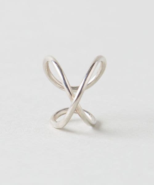 細身のワイヤークロスしたデザインの片耳用のシルバーイヤーカフ。