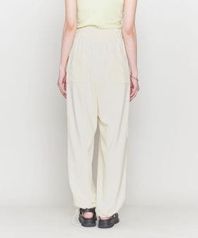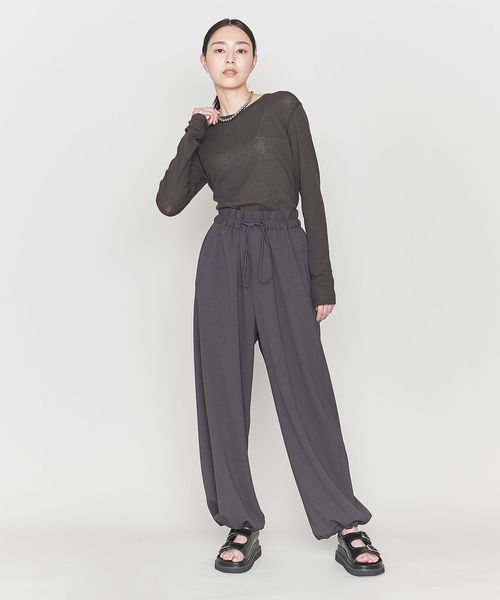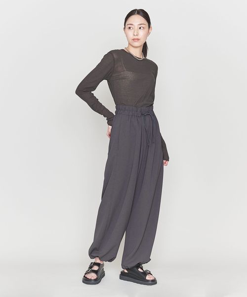 ウエストはゴム仕様で裾にもストリングがついてるので裾のシルエットをアレンジいただけます。