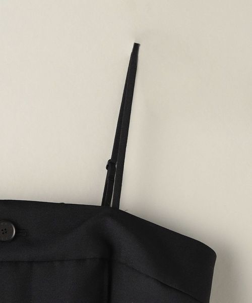 フロントボタンをあしらったベアトップデザインのオールインワン。