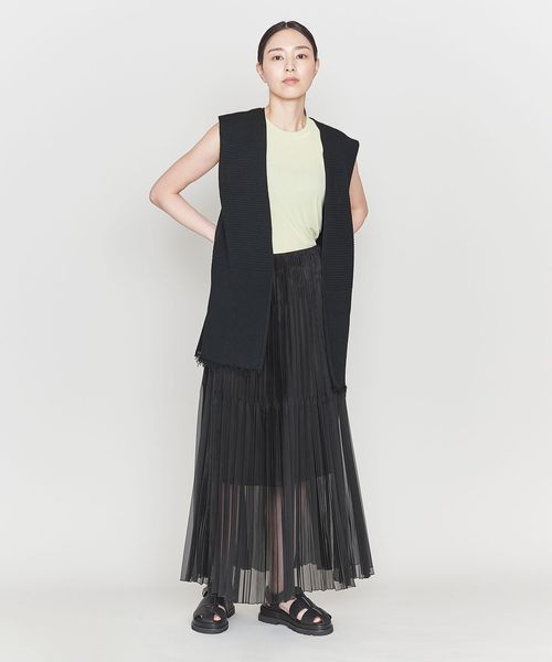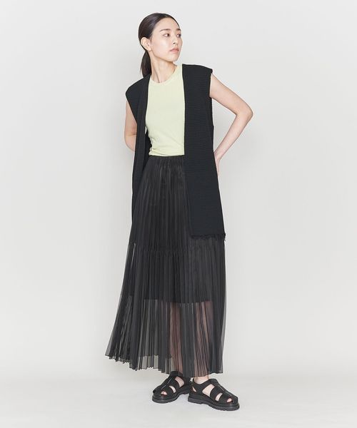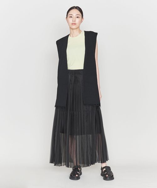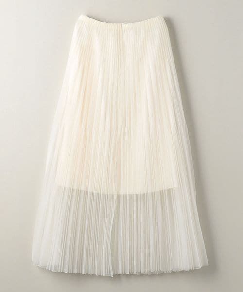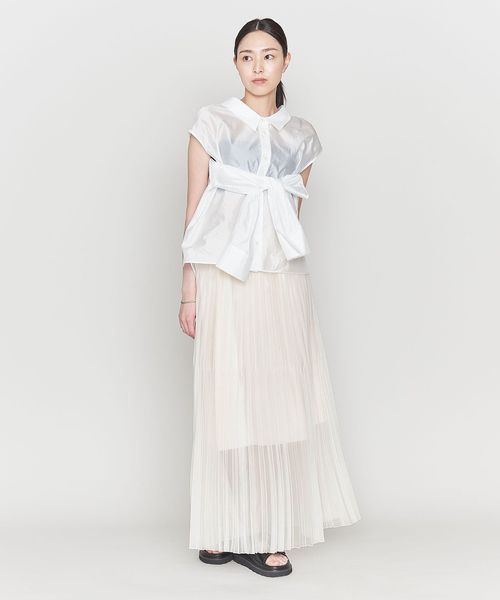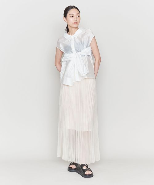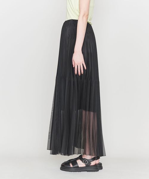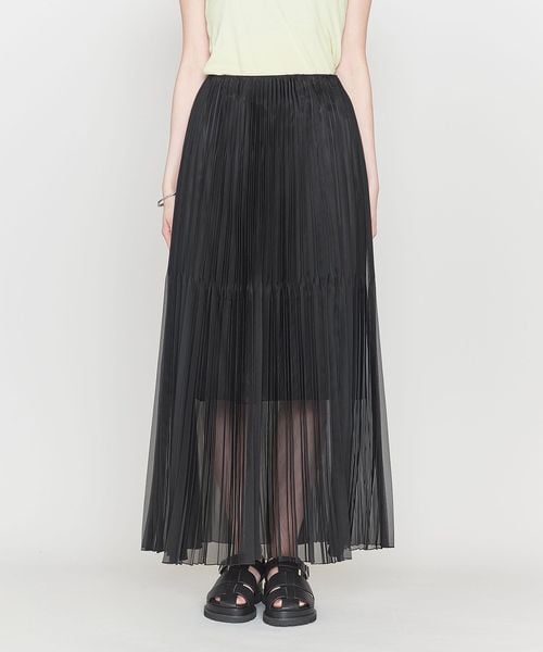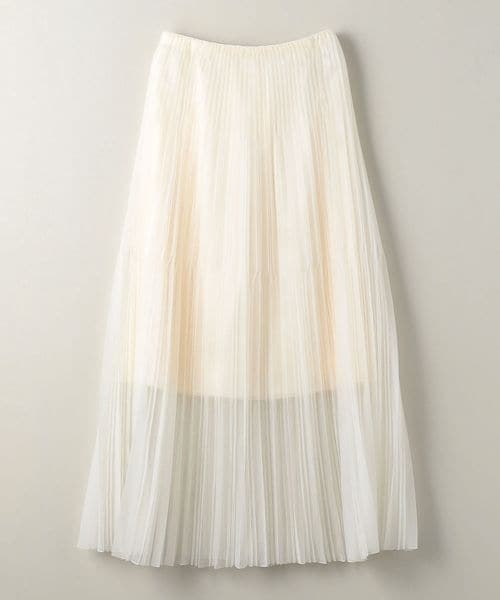 定番のマキシ丈プリーツスカートを軽やかなオーガンジー素材で提案。