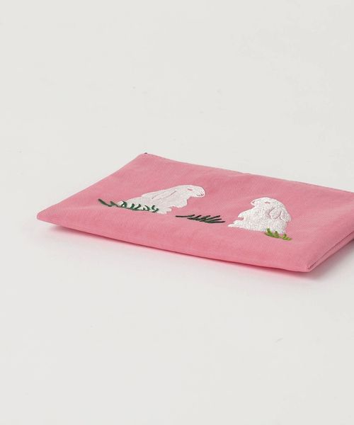 愛らしいうさぎ柄の刺しゅうをあしらったポーチです。