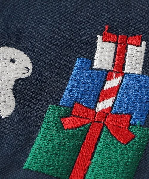 愛らしいうさぎとプレゼント柄をあしらったポーチです。