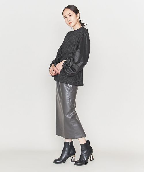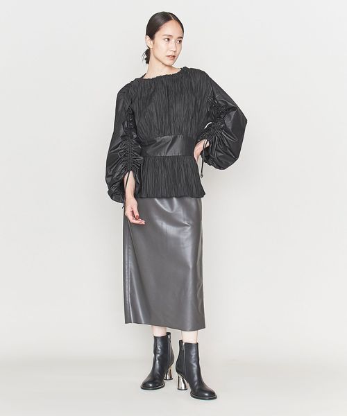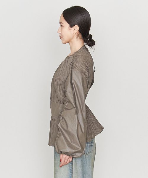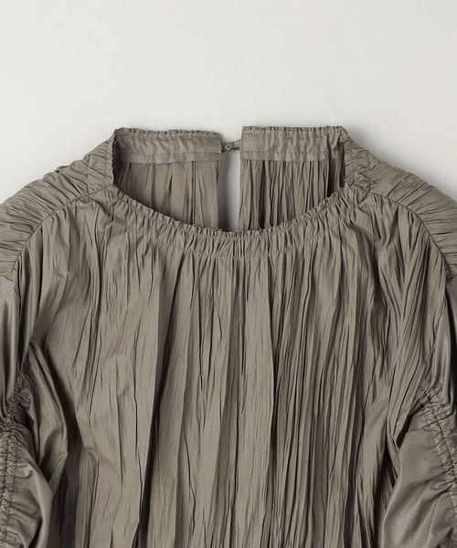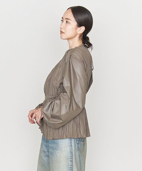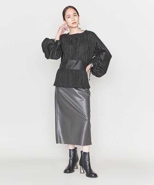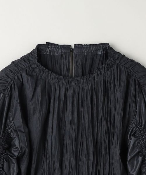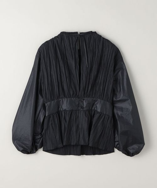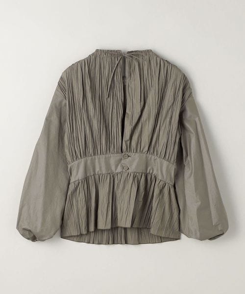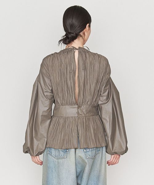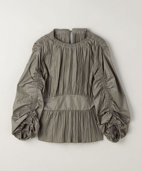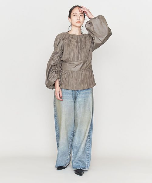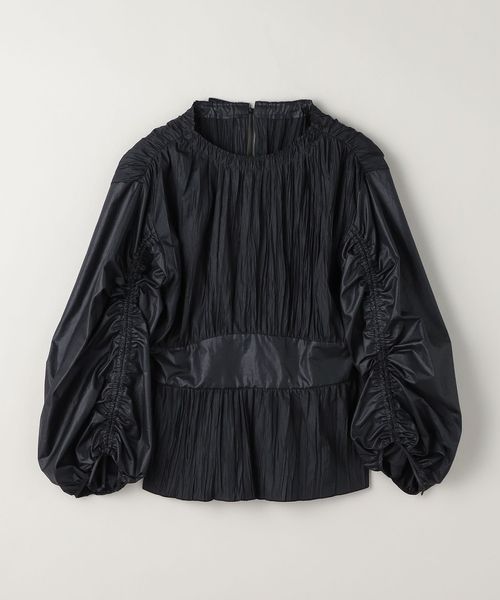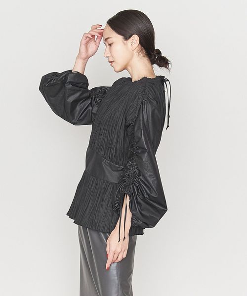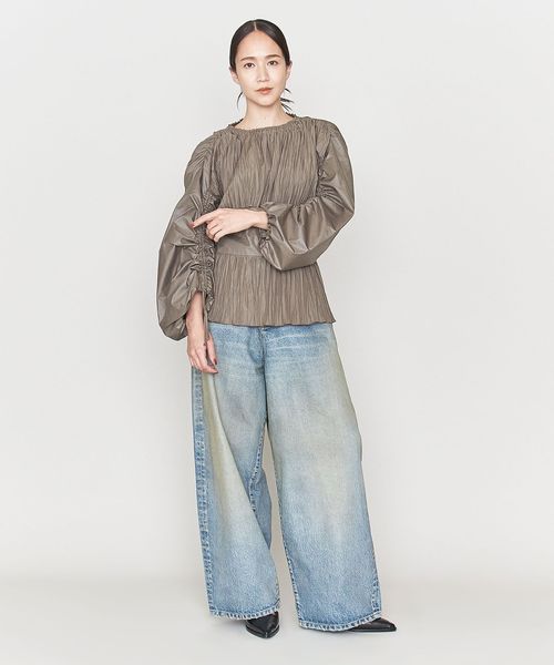 身頃のプリーツと袖のギャザーデザインが存在感溢れるブラウス。