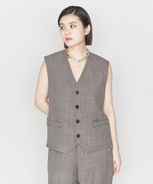 <ASTRAET>シャークスキン Vネック 4ボタン ベスト