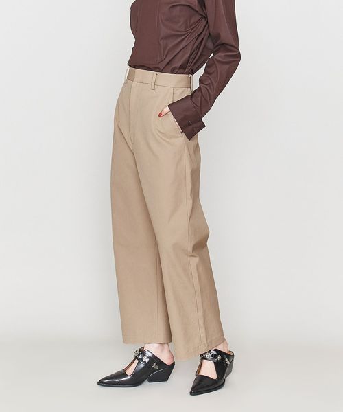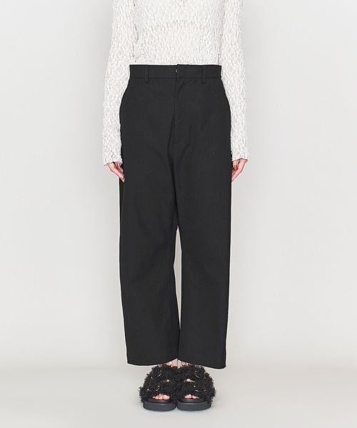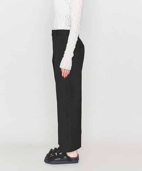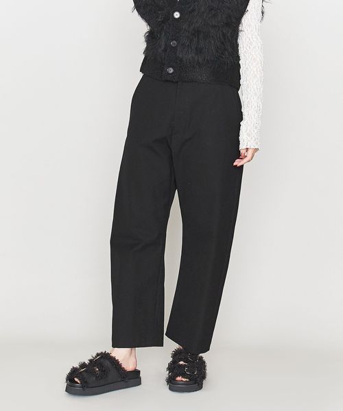 ヒップあたりから丸みを帯びたようなラインが特徴のクロップドパンツ。