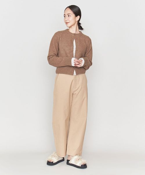 コンパクトなトップスにはワイドパンツやワンピースに羽織ってすつきりとしたバランスの着こなしを楽しめます。
