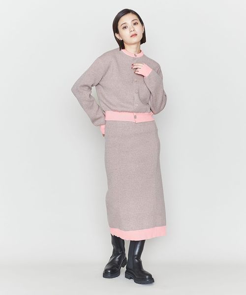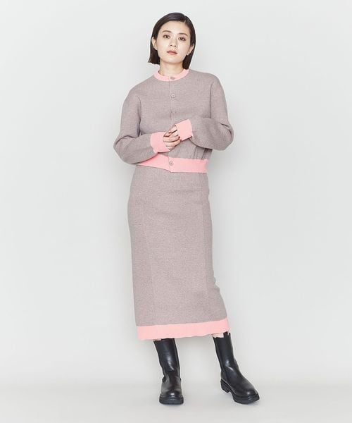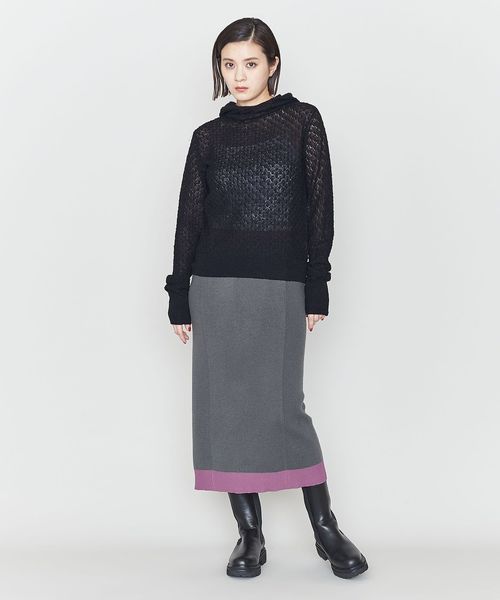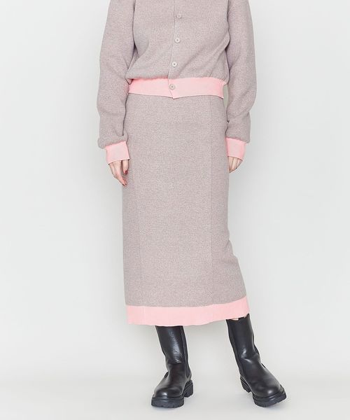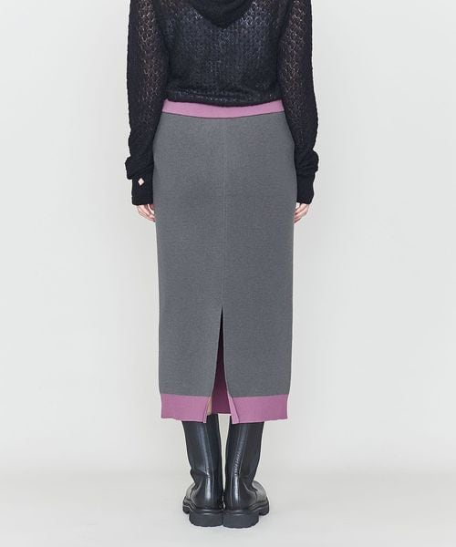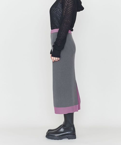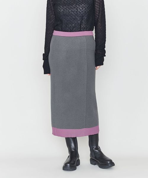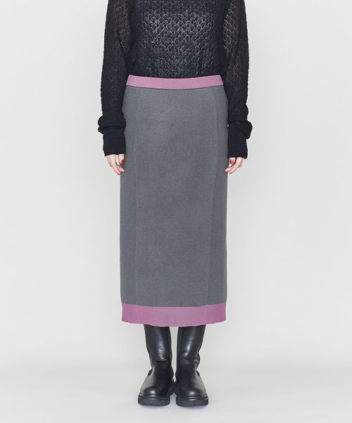 バイカラー配色が着こなしに映えるニットタイトスカート。