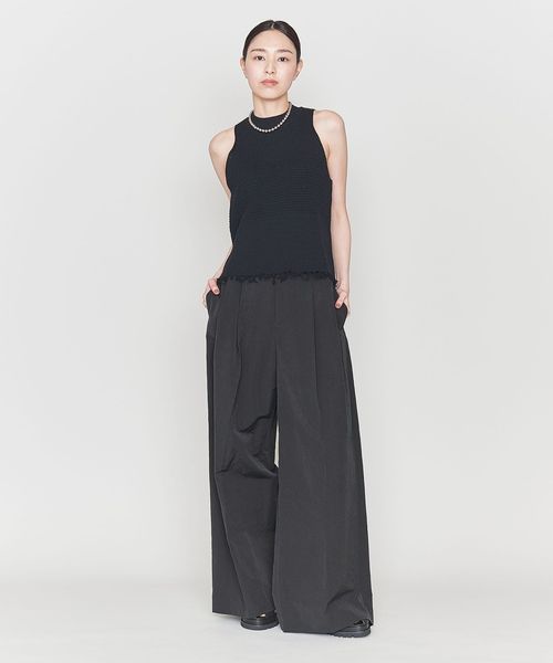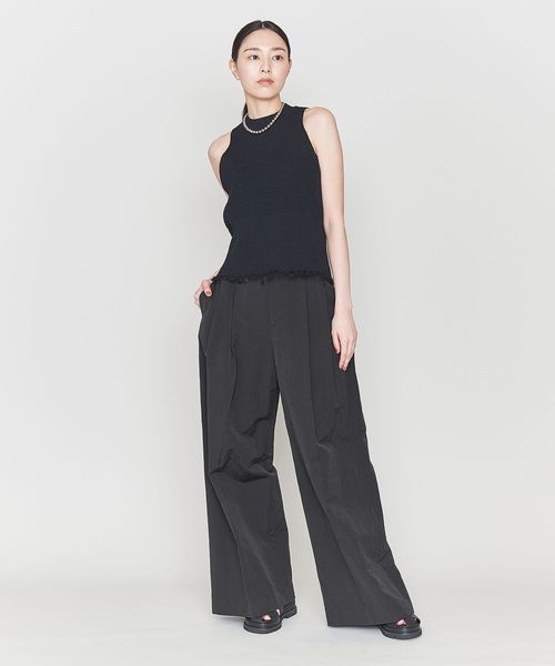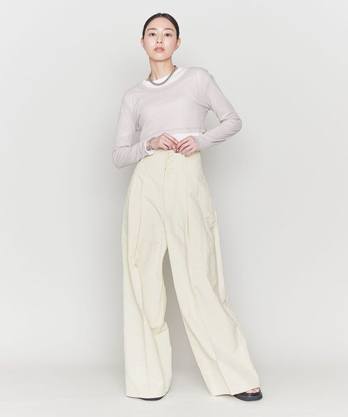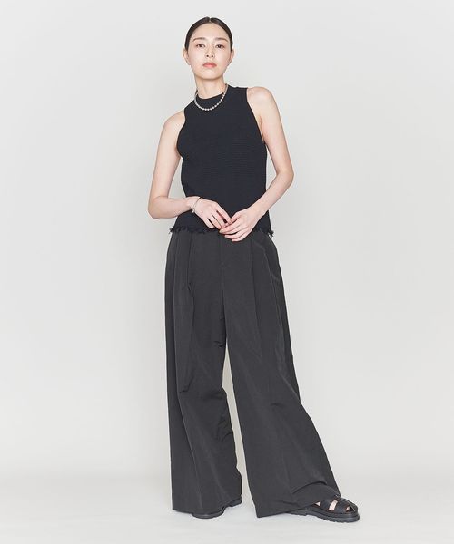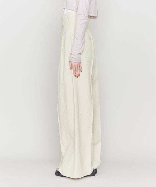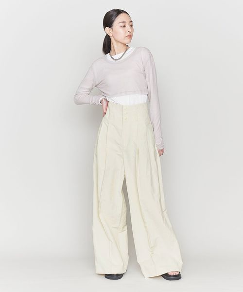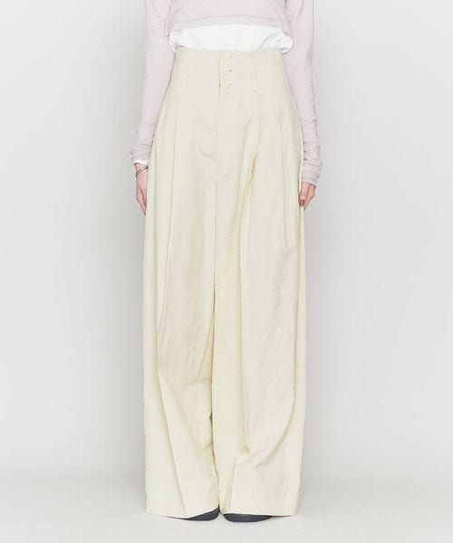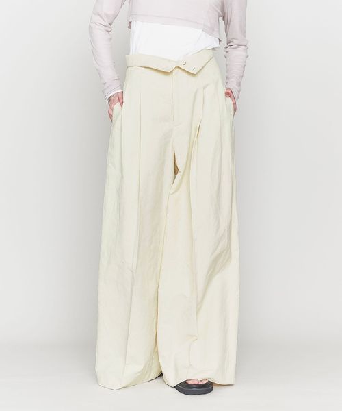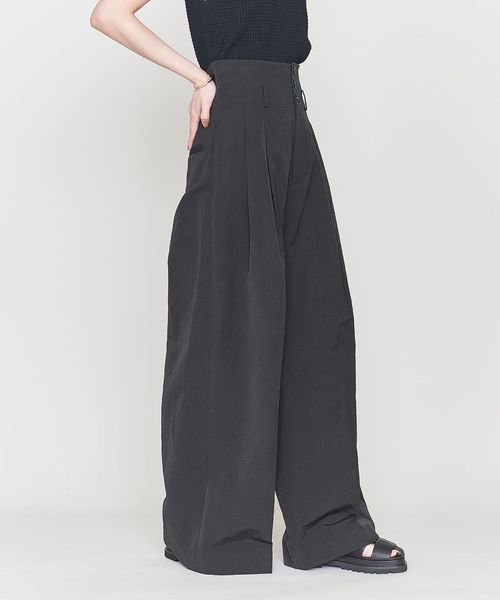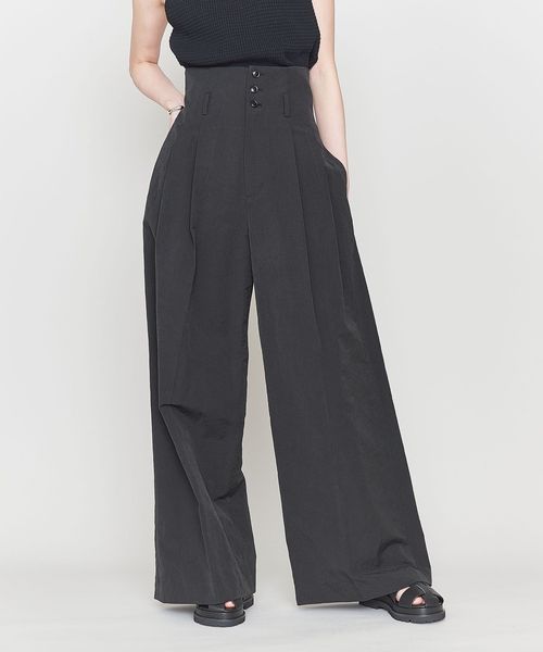 タックを施したワイドシルエットが存在感溢れるハイウエストパンツ。
