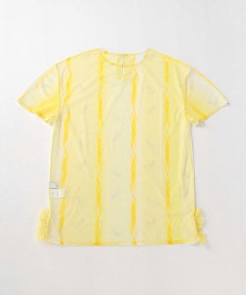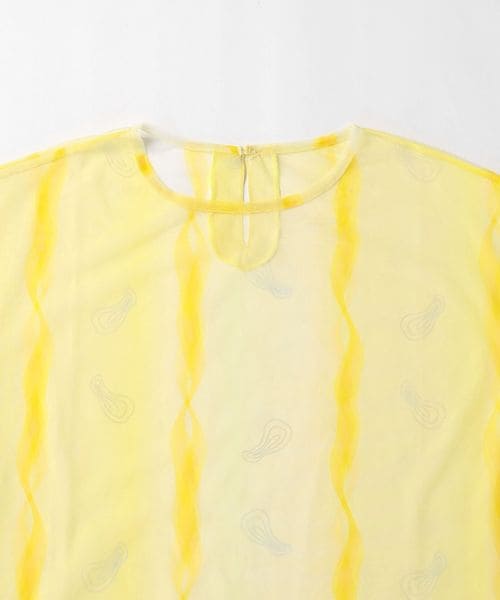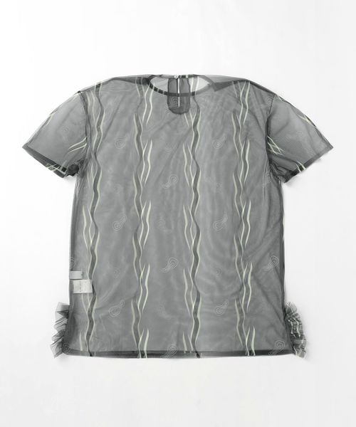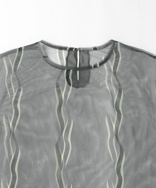 透け感のある素材に波模様のストライプ柄が目を引くカットソー。