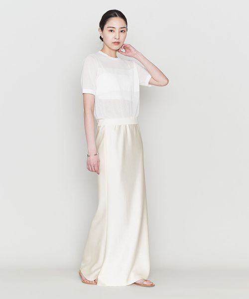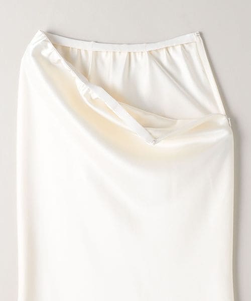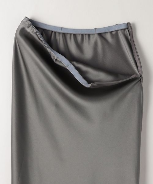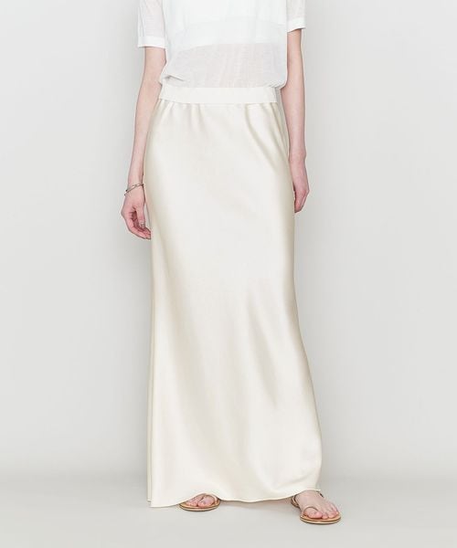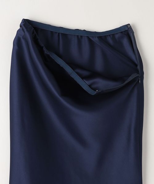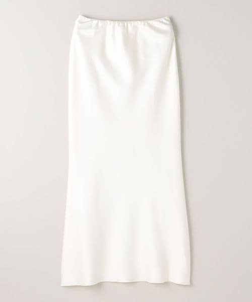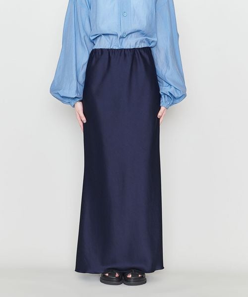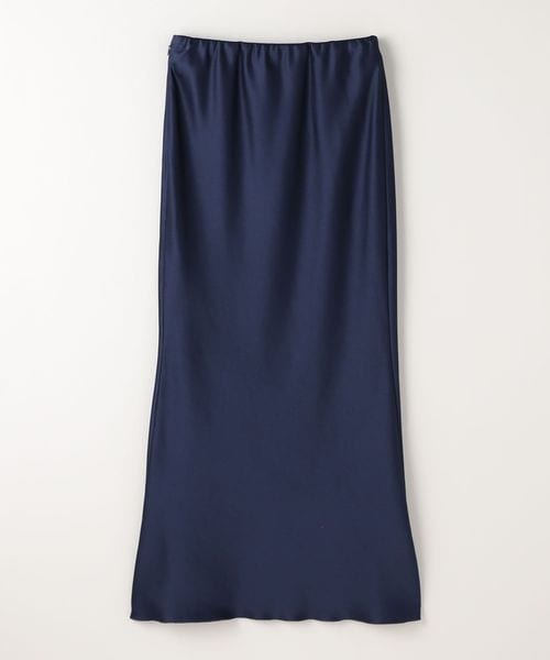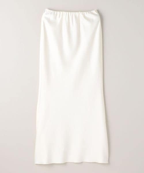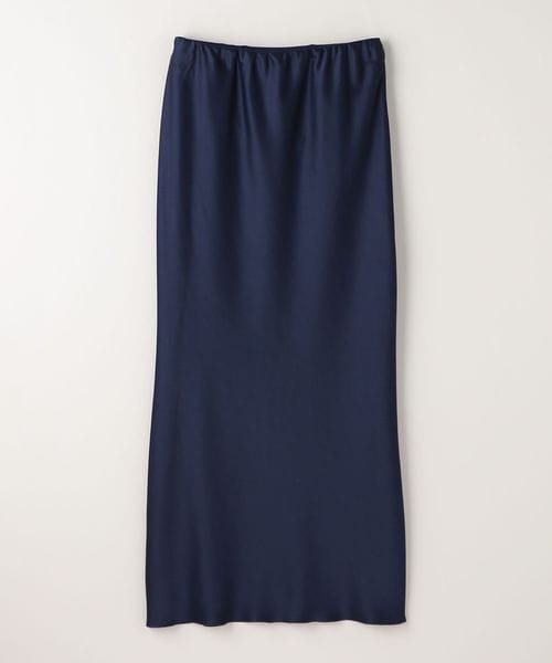 ウエストゴム仕様でイージーに着用ができながらも腰周りはすっきりと仕上げたサテンタイトスカート。