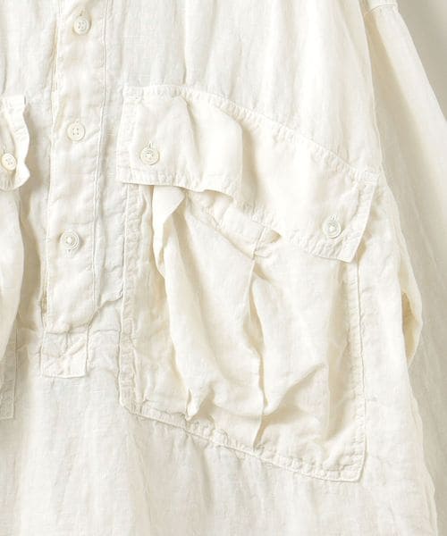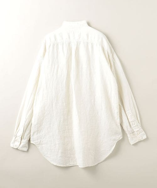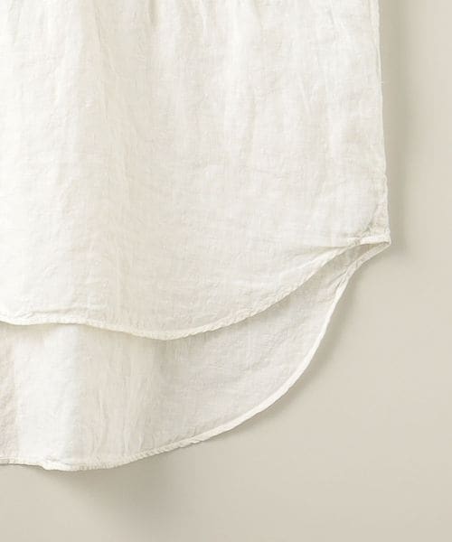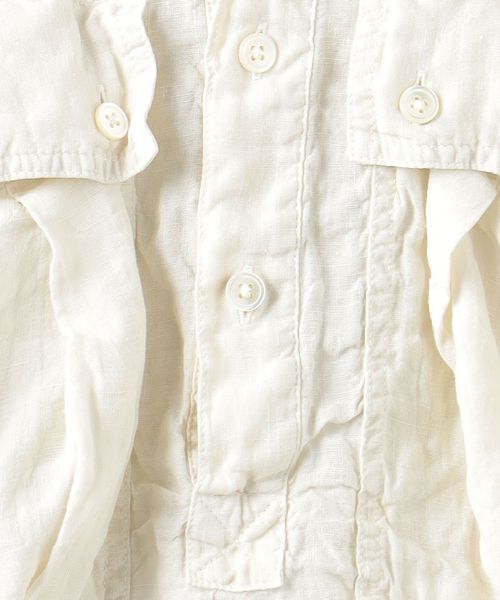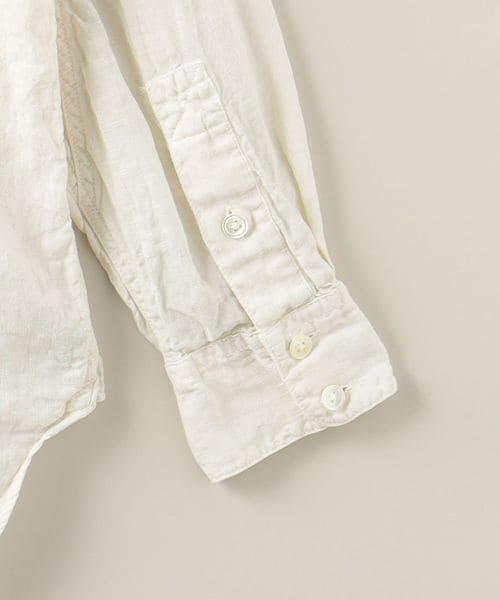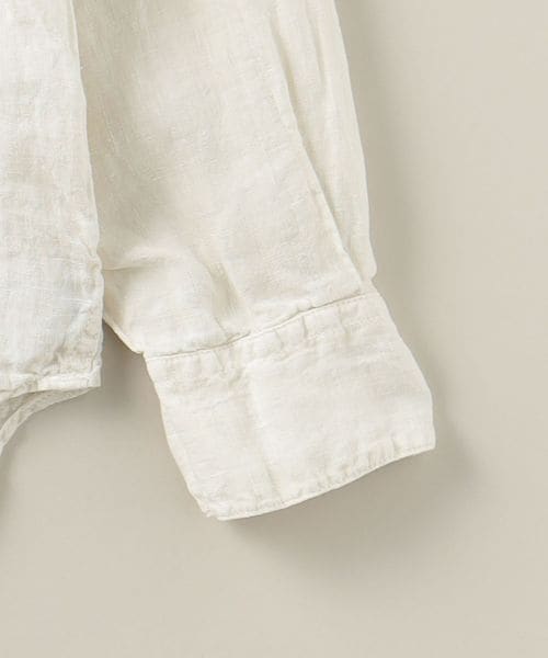 麻のナチュラルなシワ感が抜け感漂う爽やかなバンドカラーシャツ。