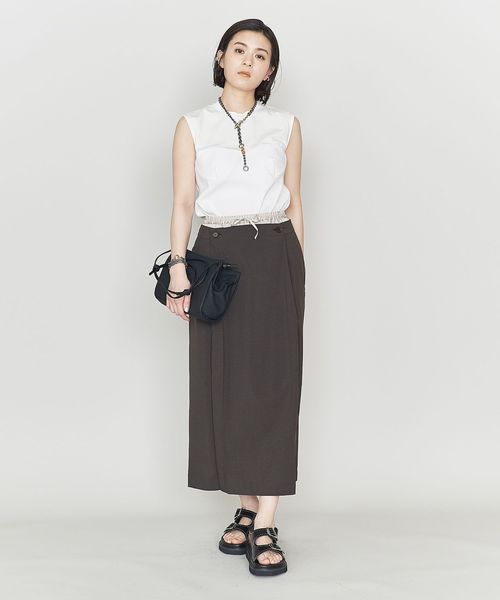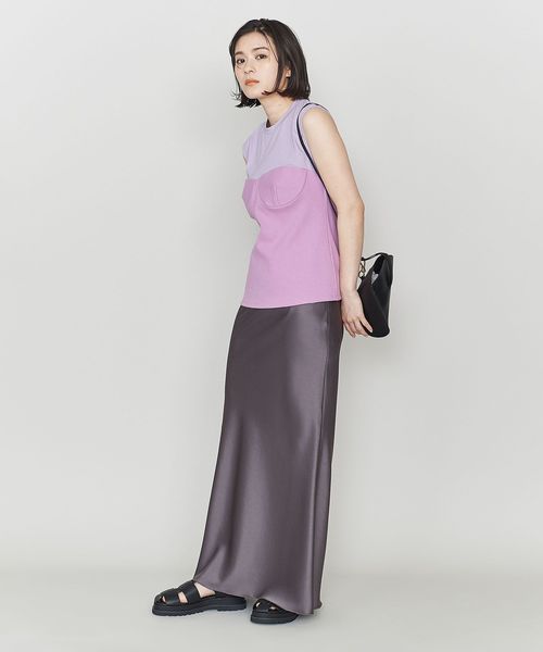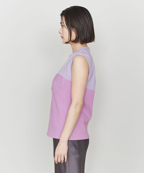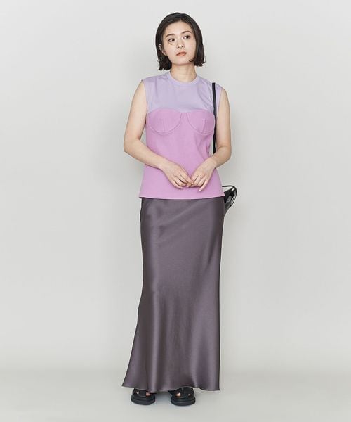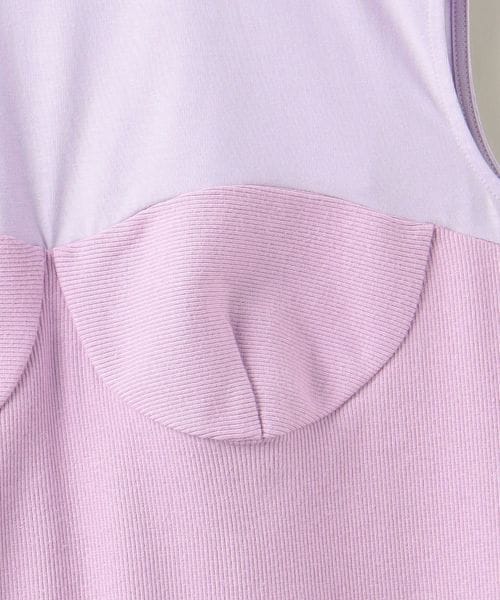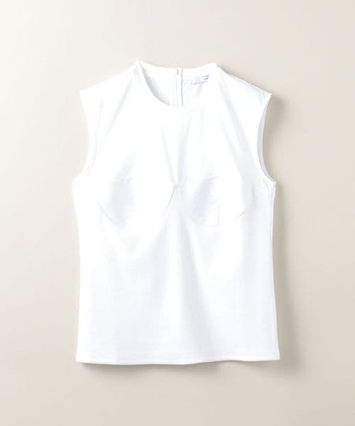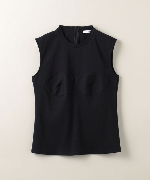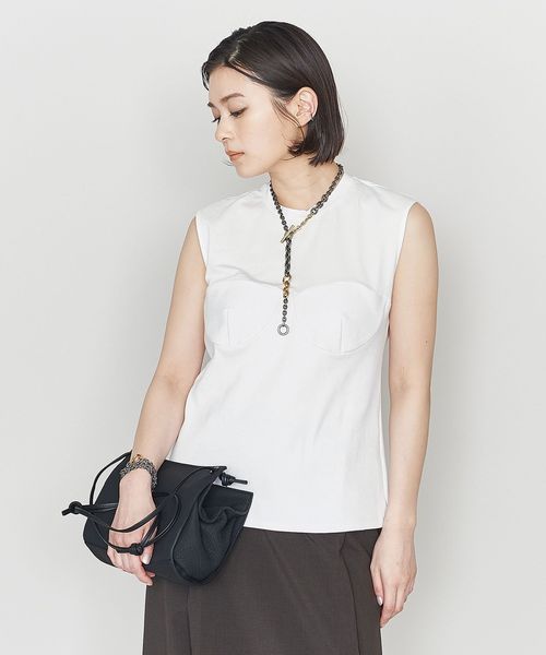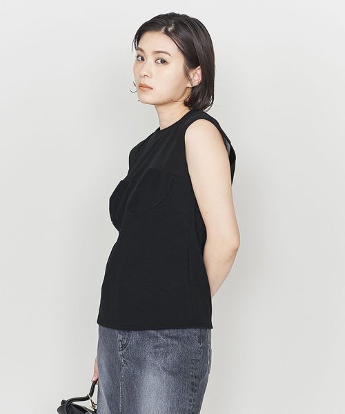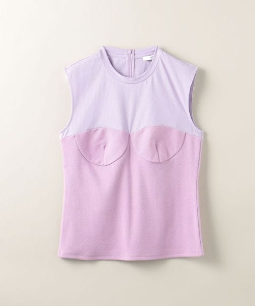 ノースリーブカットソーにビスチェをレイヤードしたようなデザインのトップス。