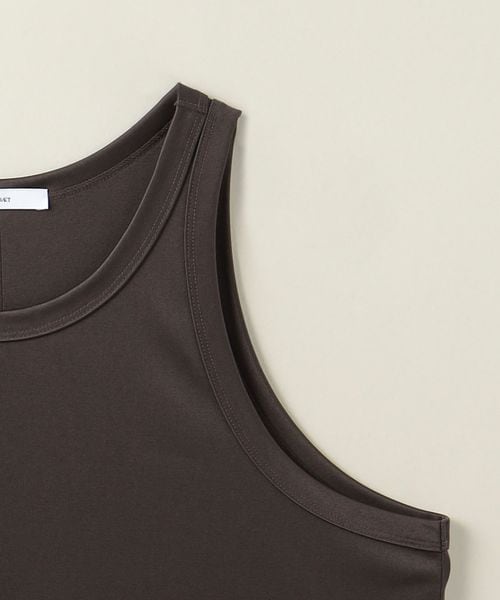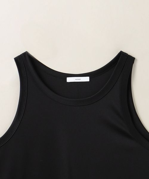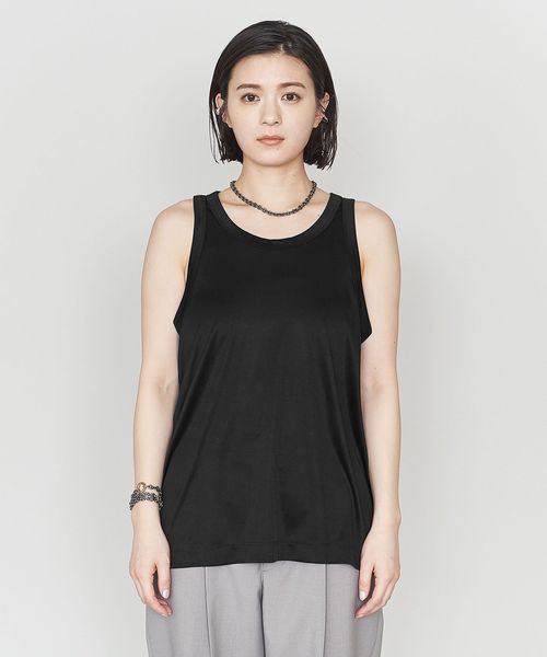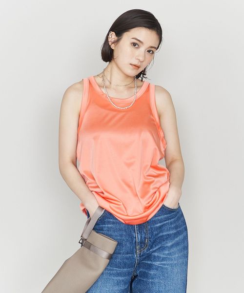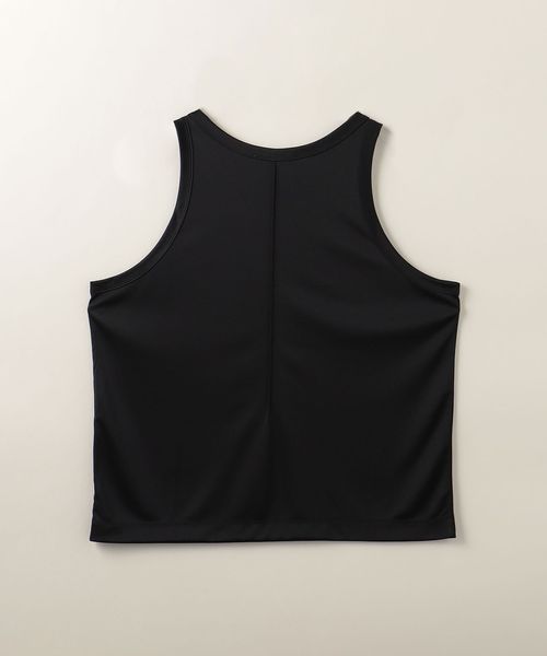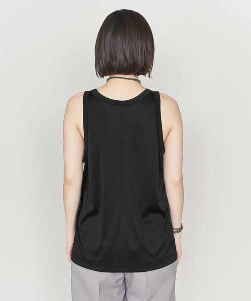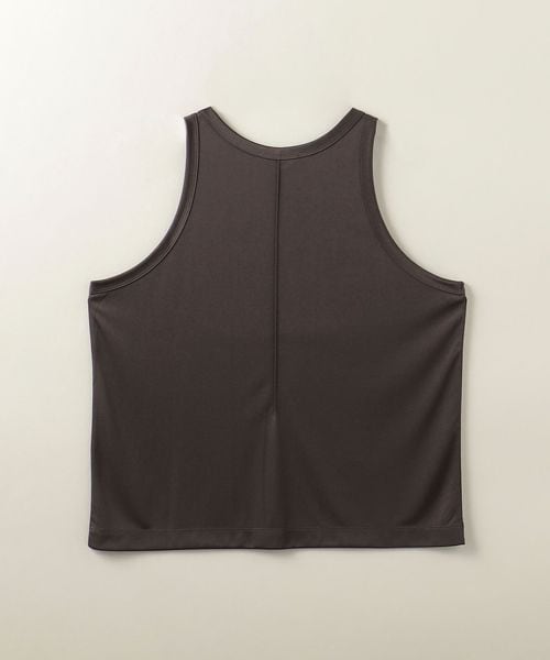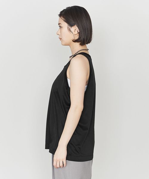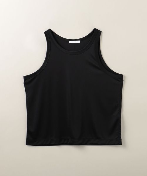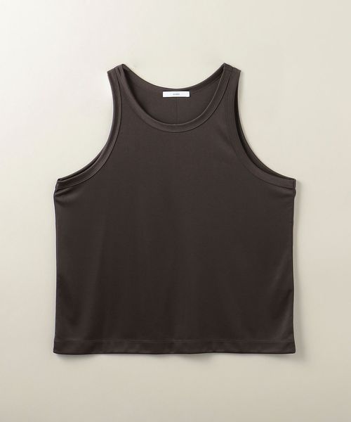 えり開き、アームホール、身頃をオーバーサイズにとったシルエットが特徴のスポーティーなタンクトップ。