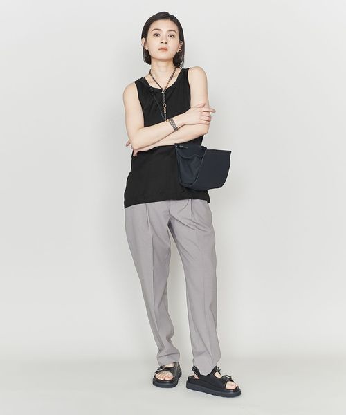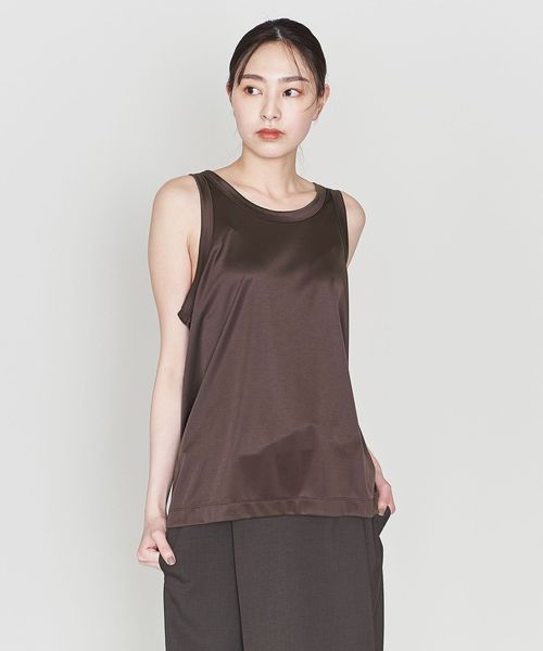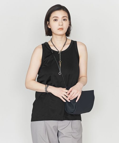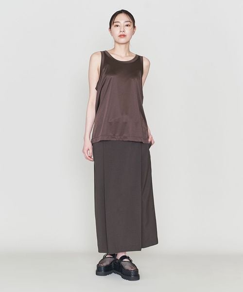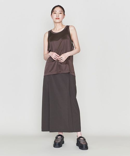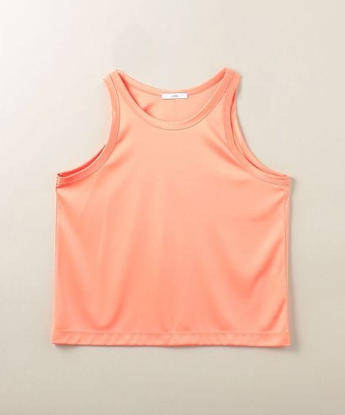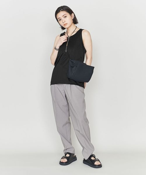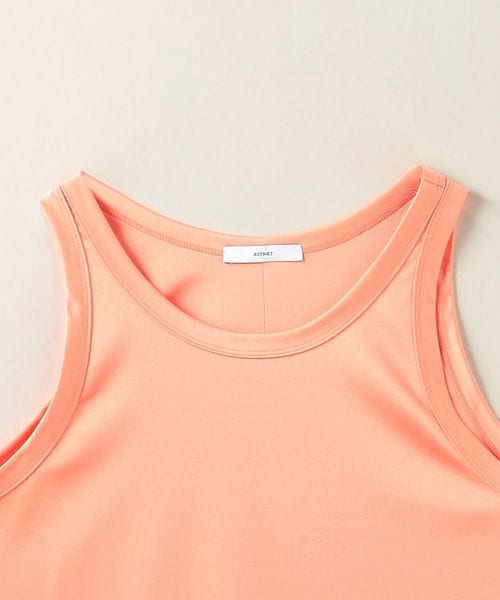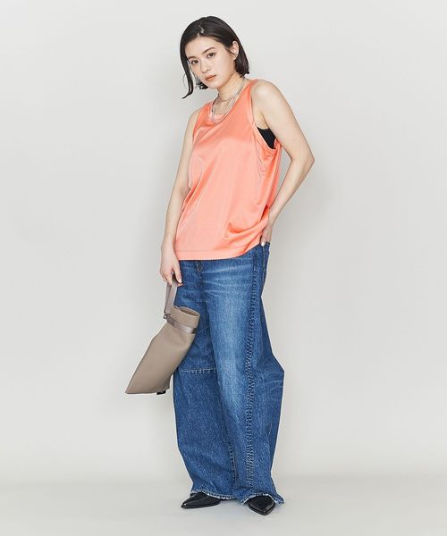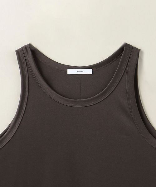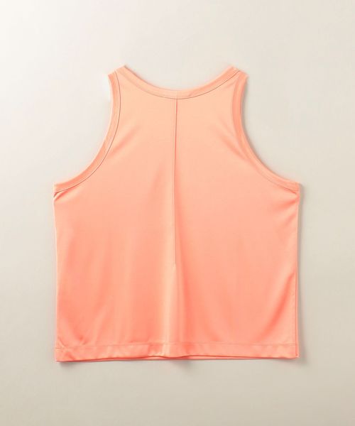 えり開き、アームホール、身頃をオーバーサイズにとったシルエットが特徴のスポーティーなタンクトップ。