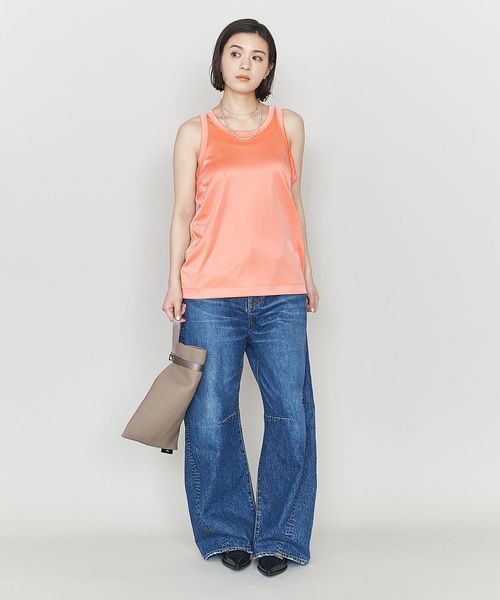 ベアトップや、キャミソールをインナーして1枚着でデニムなどカジュアルボトムにあわせたヘルシーな着こなしがおすすめです。