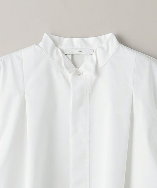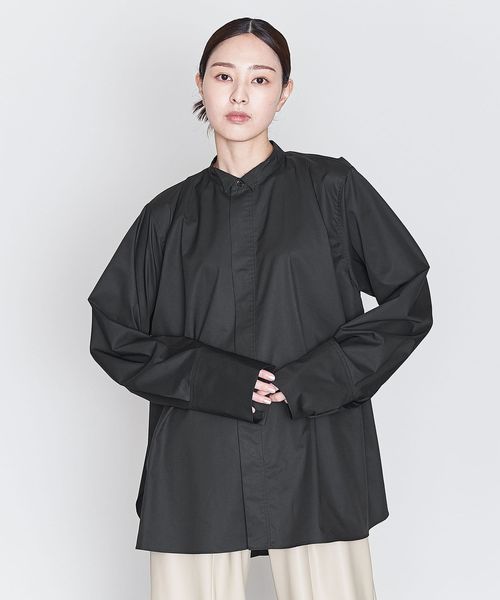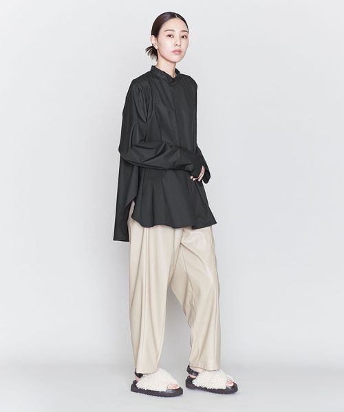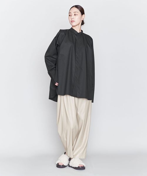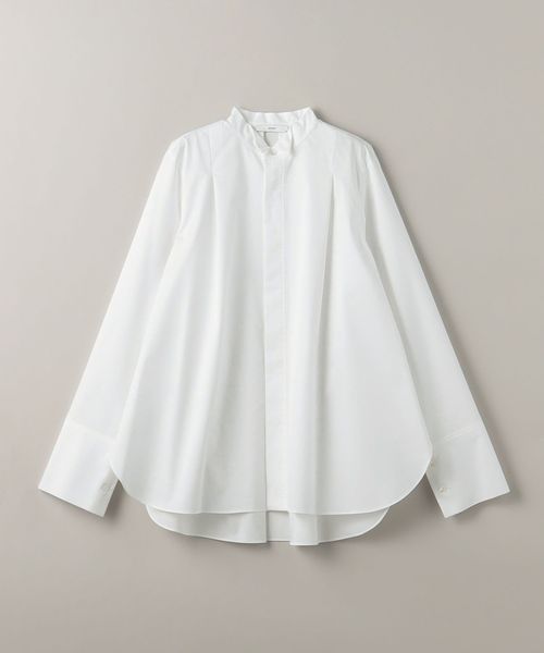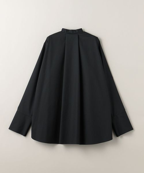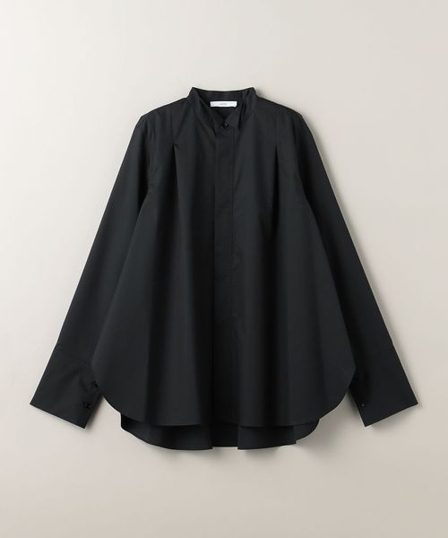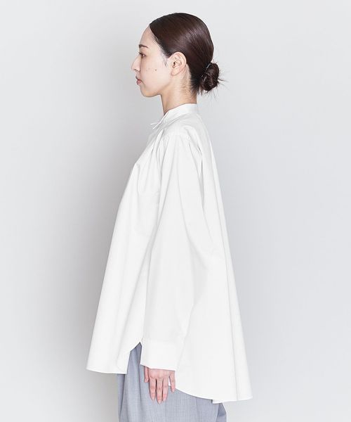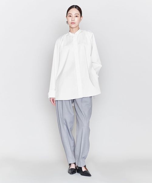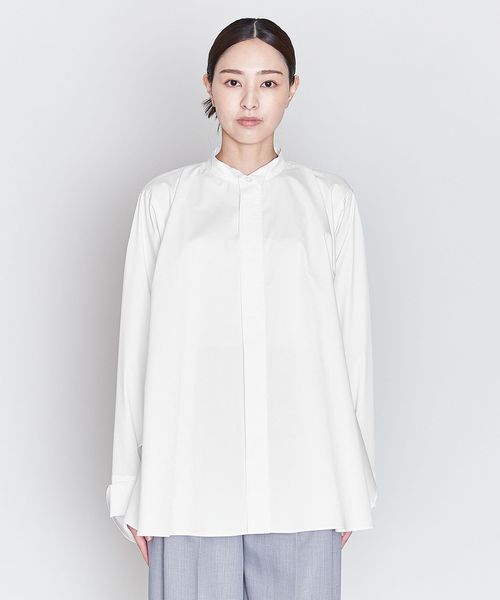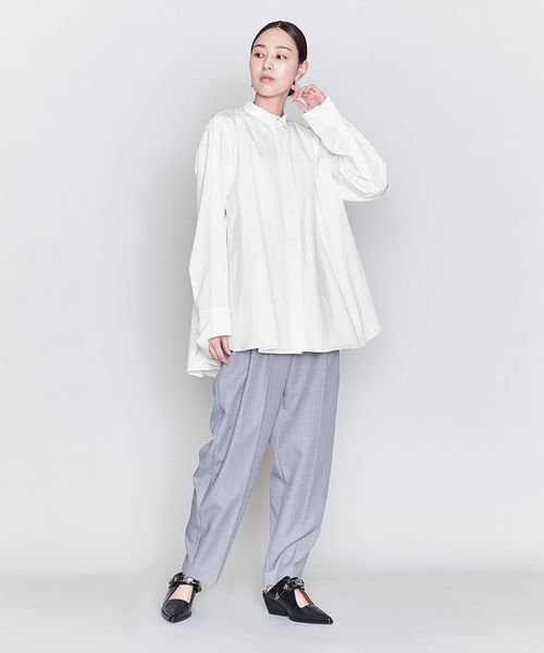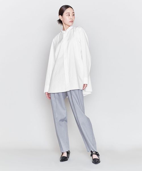 ドレープが華やかなゆったりとしたフレアシルエットのウイングカラーシャツ。
