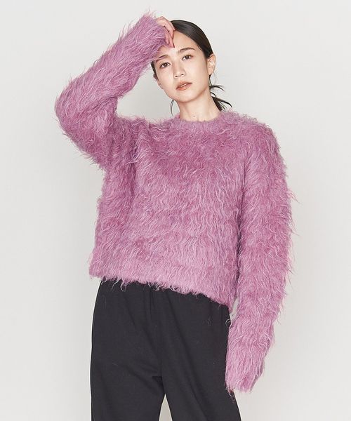 着こなしの主役にぴったりのヘアリーな毛足がっ目を引くクルーネックニット。