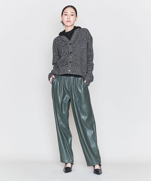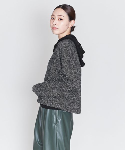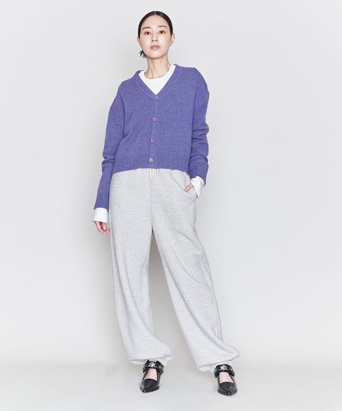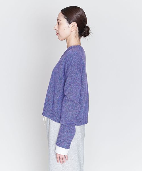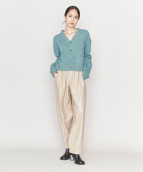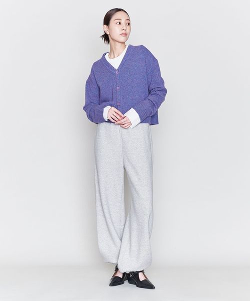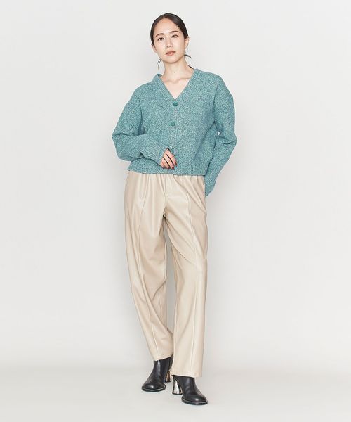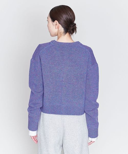 ミックスカラーの表情のあるニットにはシンプルなボトムとあわせるとニットが引き立ちます。