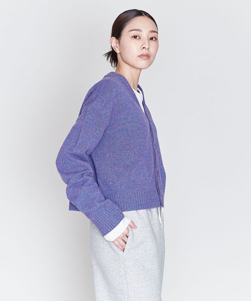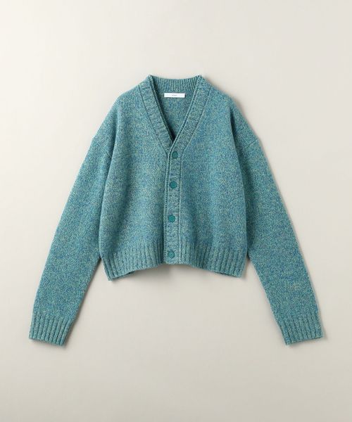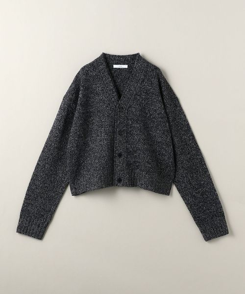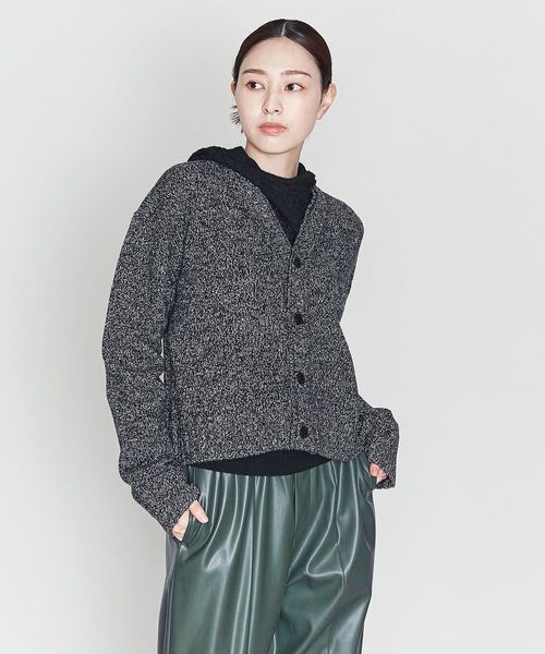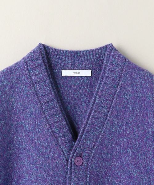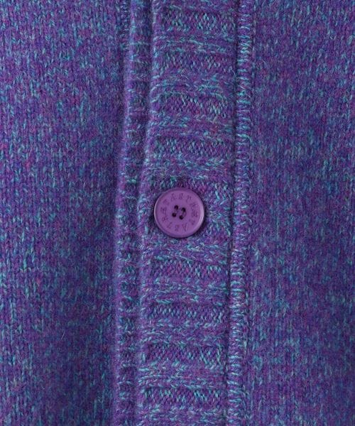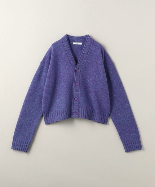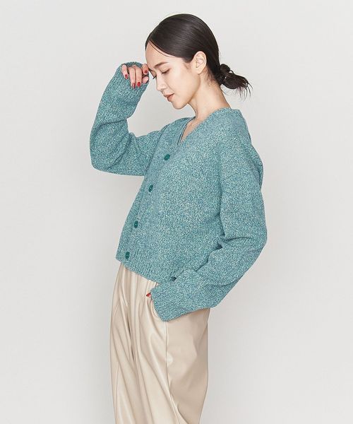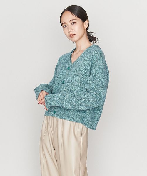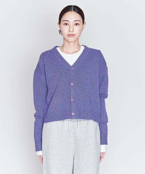 えり元からのぞく二重仕立てのデザインが遊び心感じるVネックカーディガン。