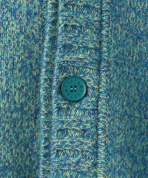 シンプルなデザインながらVネックカーディガンの前立てが二重になっているところがポイントです。