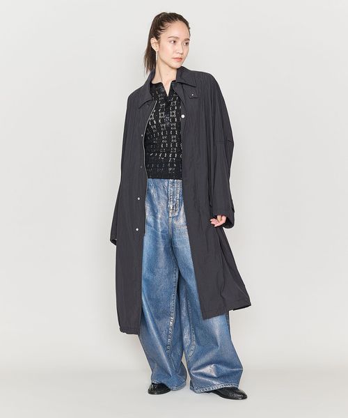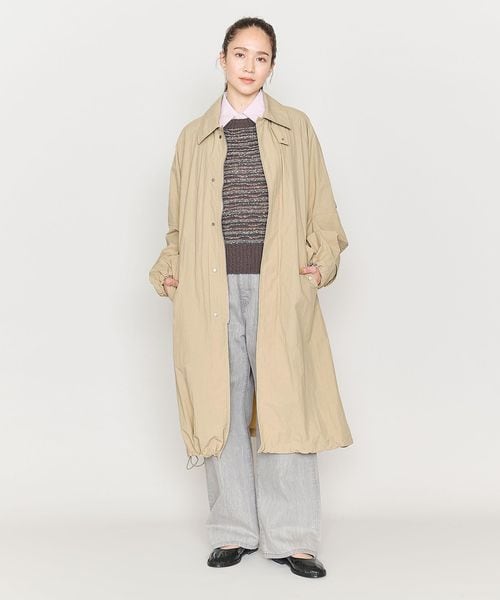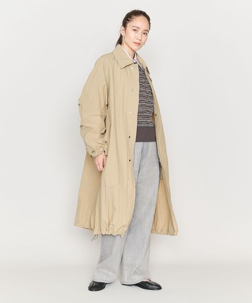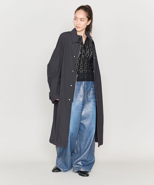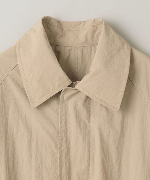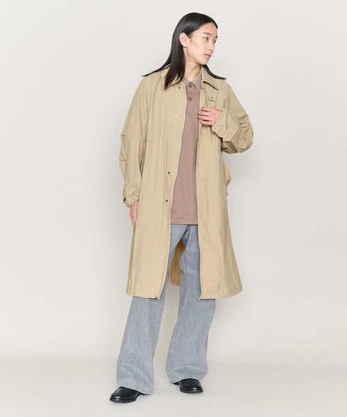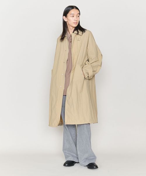 軽やかに羽織れるタフタ素材のステンカラーコートをユニセックスで提案。