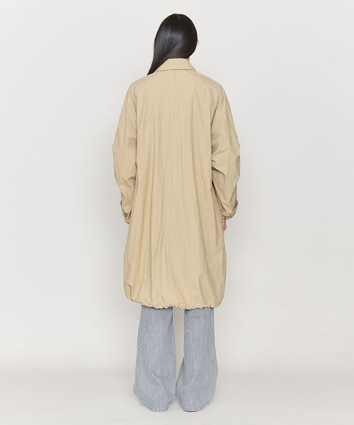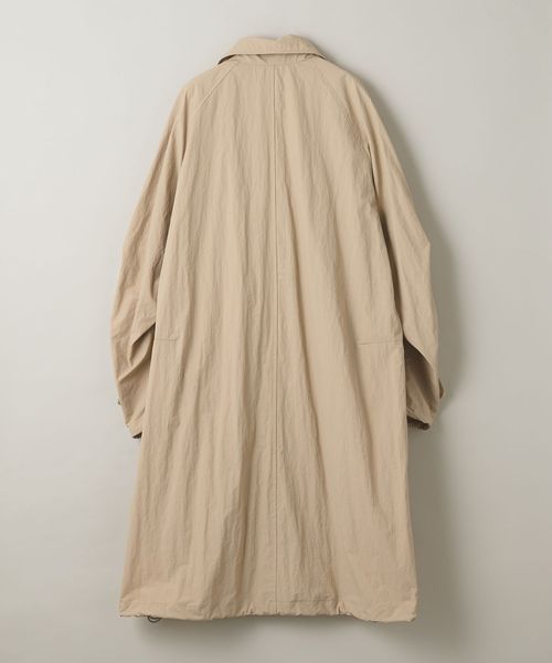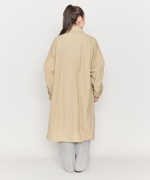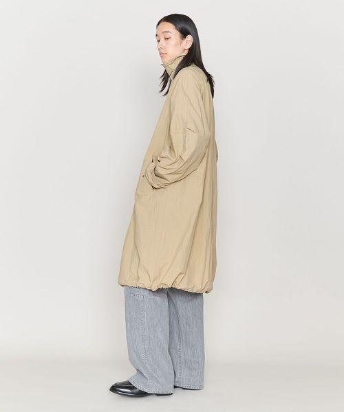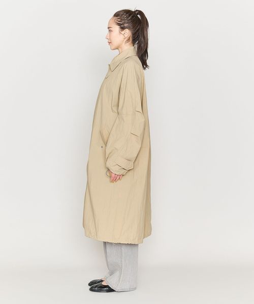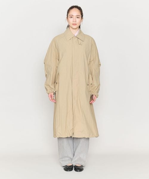切り替えやタックで立体的なシルエットのワイドスリーブが特徴のステンカラーコート。