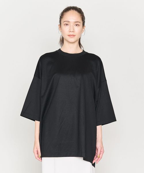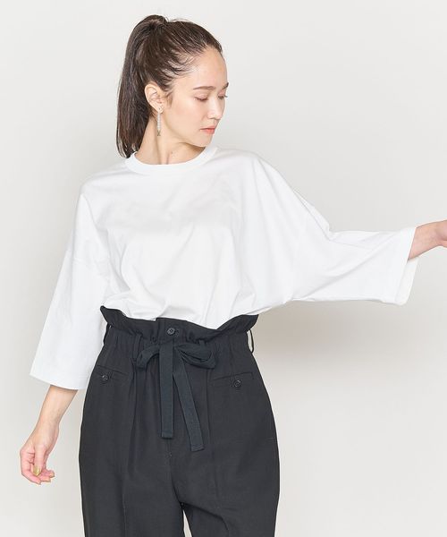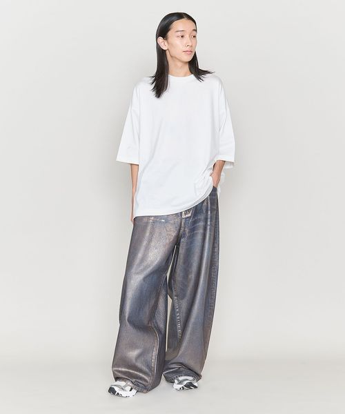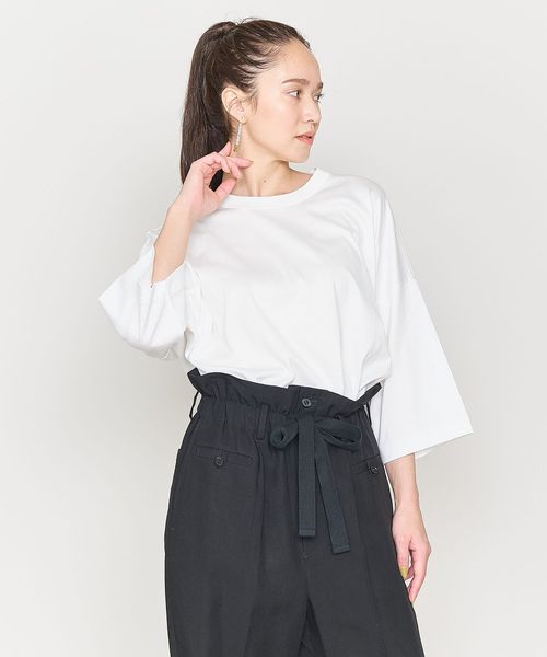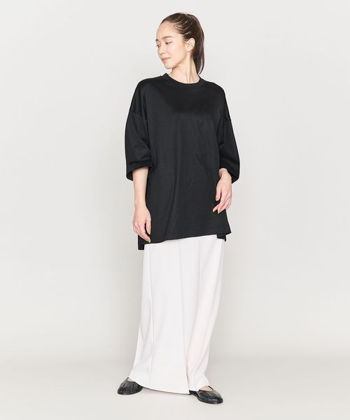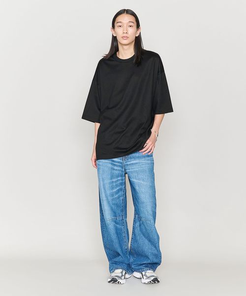 きれいめな表情のビッグシルエットのクルーネックTシャツをユニセックスで提案。