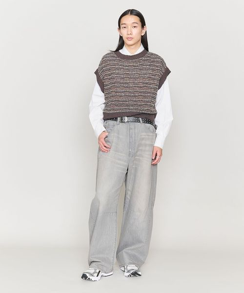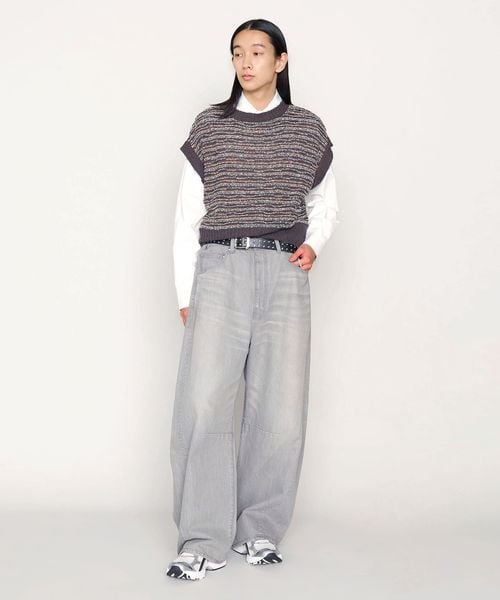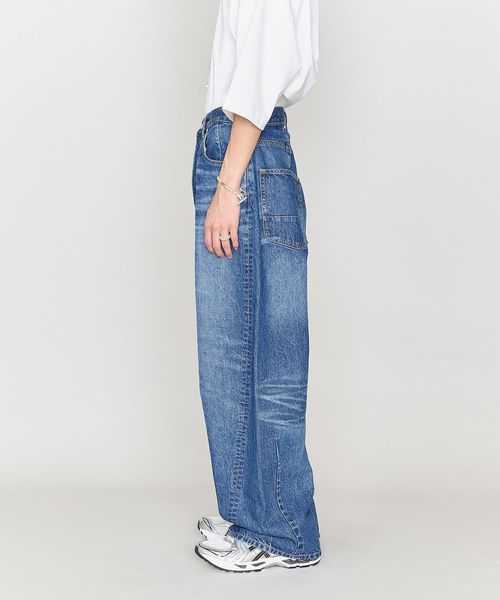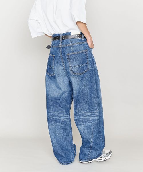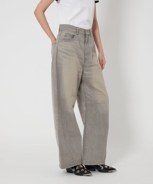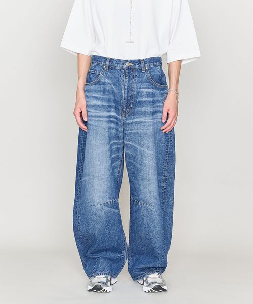 へちまのようなカーブシルエットが特徴のワイドデニムパンツ。