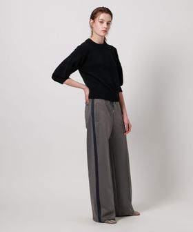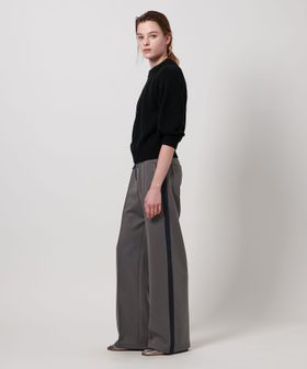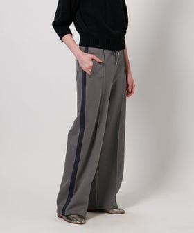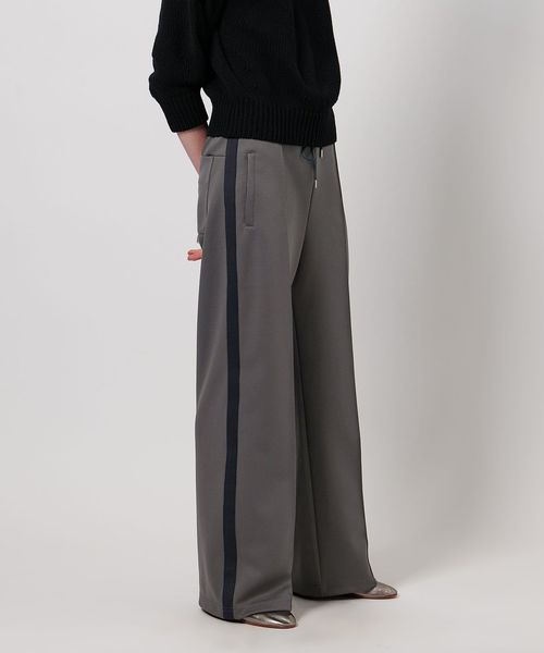 脇に太めの配色ラインを入れたストレートシルエットのトラックパンツ。