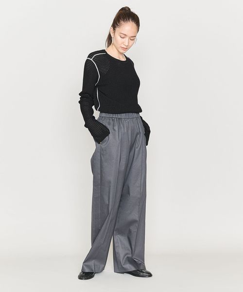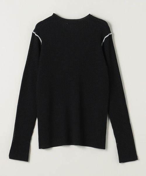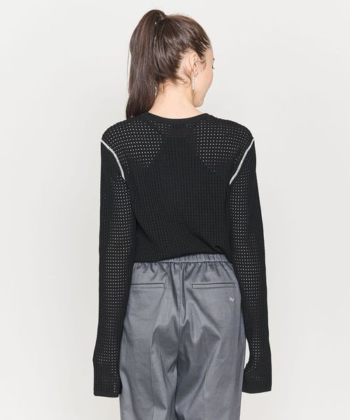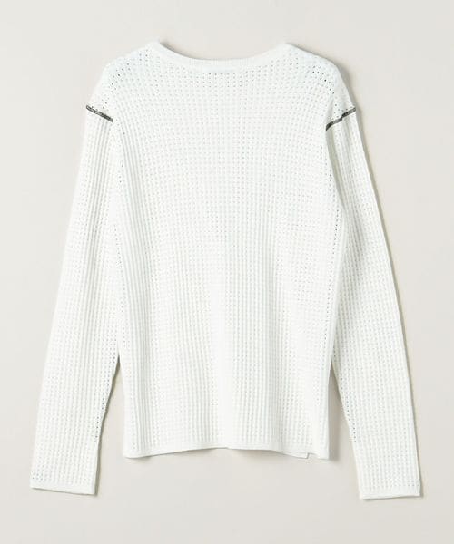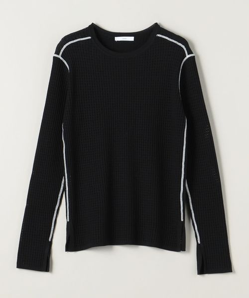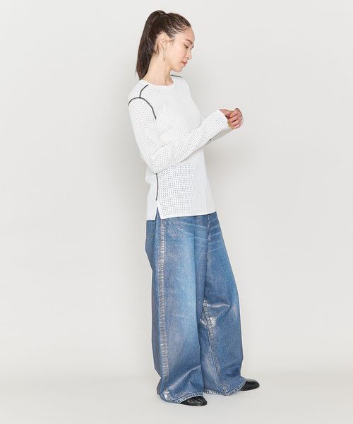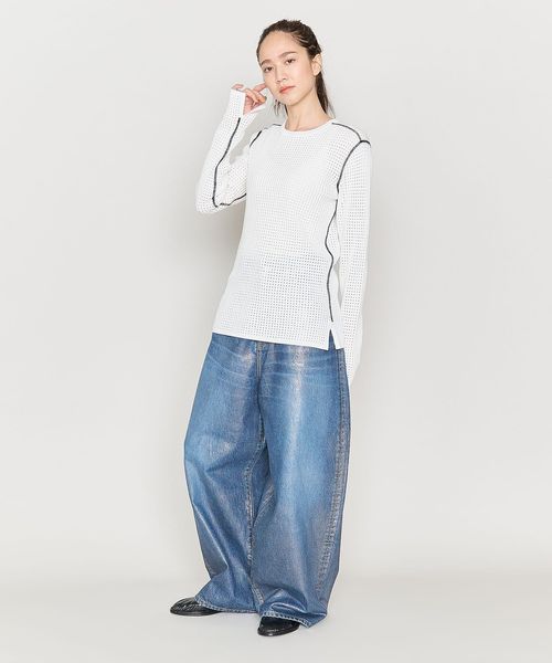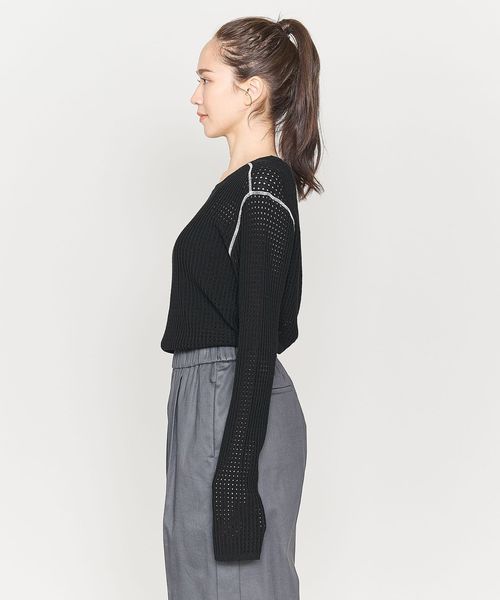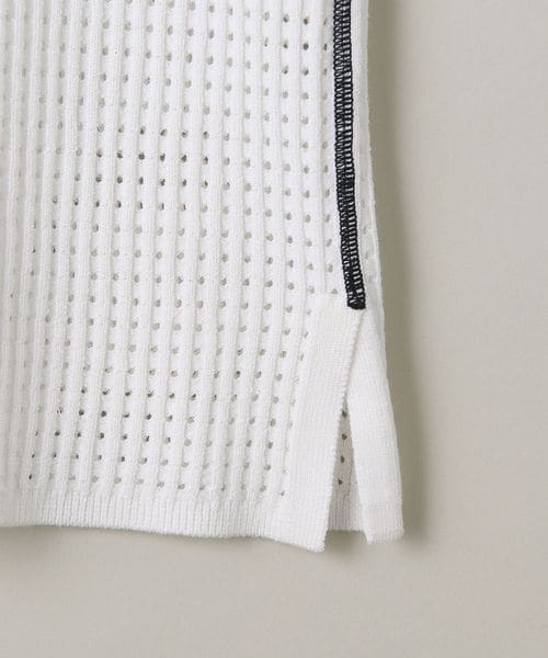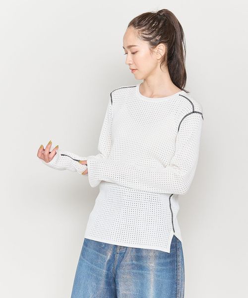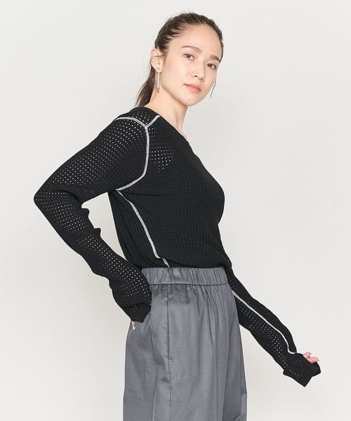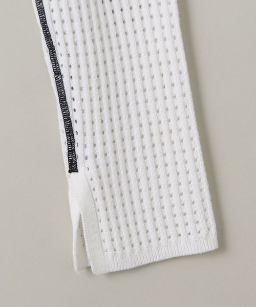 リブの間にアイレットが入っていることでメッシュのように見え、袖口と裾にスリットが入っているのもデザインポイントです。