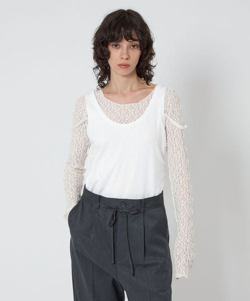 一枚でヘルシーに着用するのはもちろん、レースやシアー素材のカットソーにレイヤードするのもおすすめです。