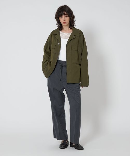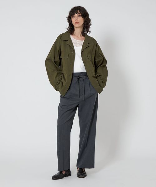 シンプルな型で袖口のパイピングをイレギュラーに外して縫製した動きのあるデザインです。