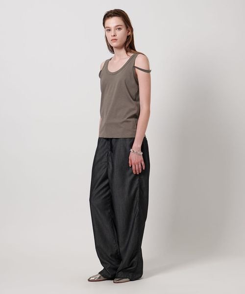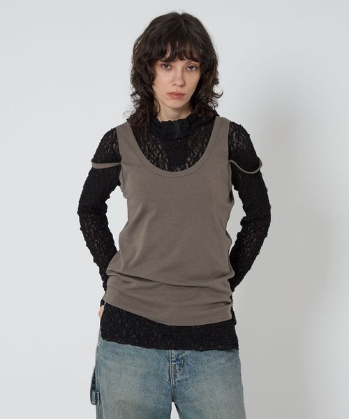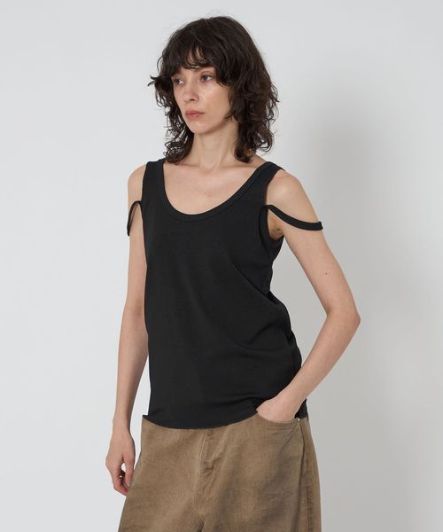 エリや袖口のデザインが抜け感のあるタンクトップ。