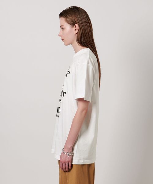 モノトーンのレタードデザインが様々な着こなしに取り入れやすいクルーネックTシャツ。