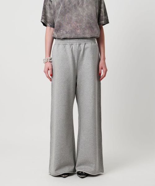 たっぷりした裾幅ですがウエストからヒップをすっきりとしたラインに仕上げたスウェットパンツ。