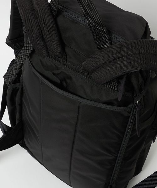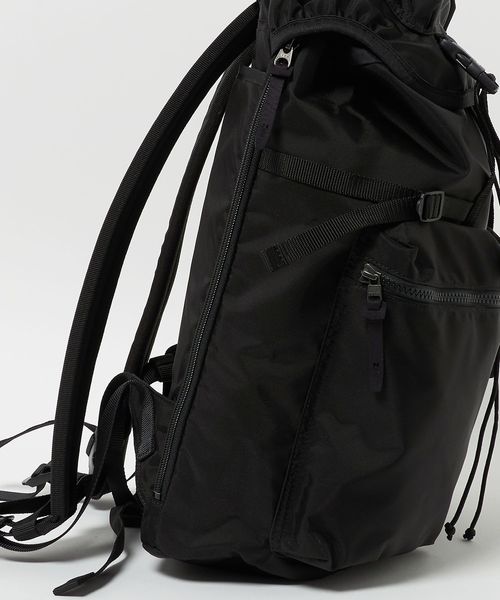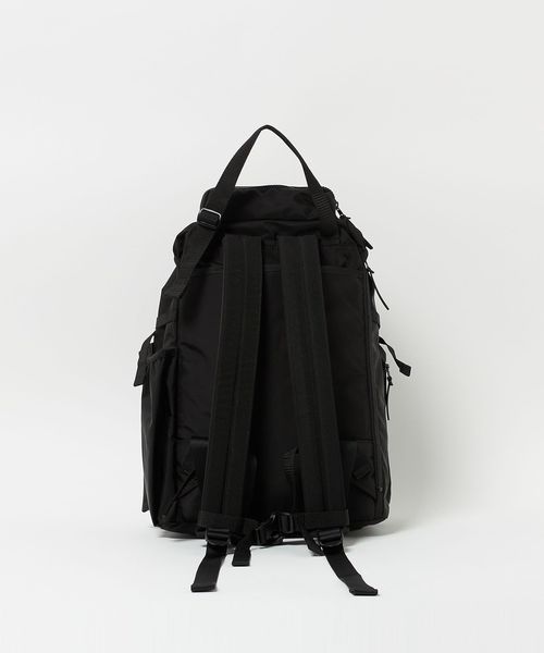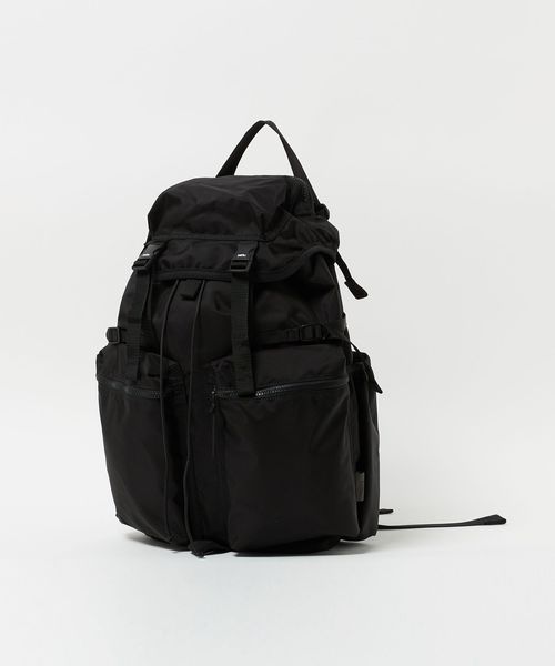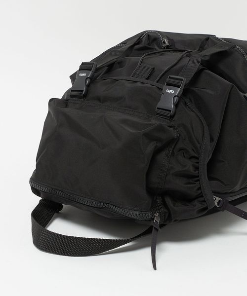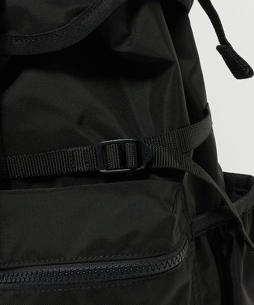2つの大きめジップポケットやバックルをあしらったミリタリーテイスト漂うバックパック。