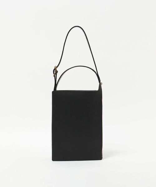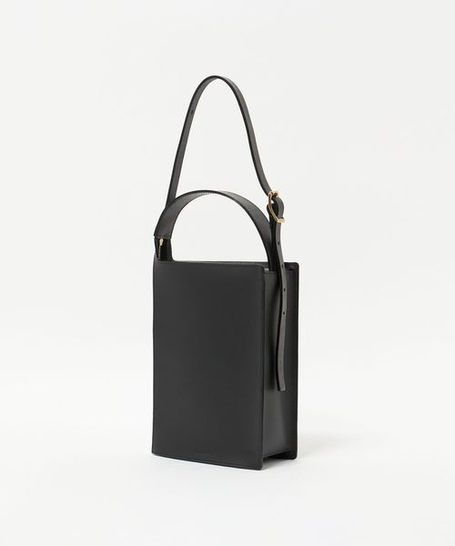 縦横どちらに持っても使えるミニマルな箱型バッグです。