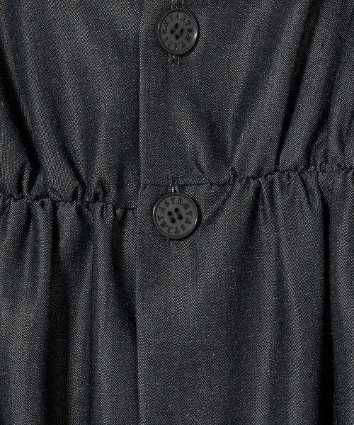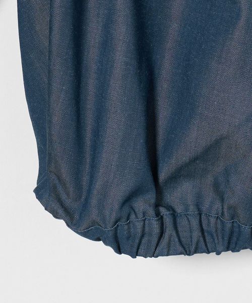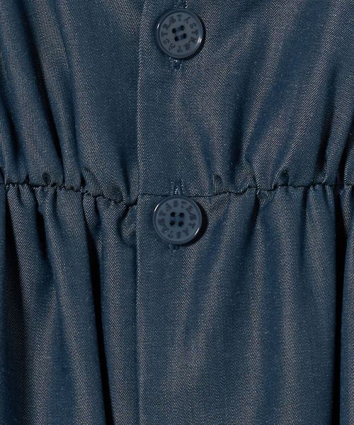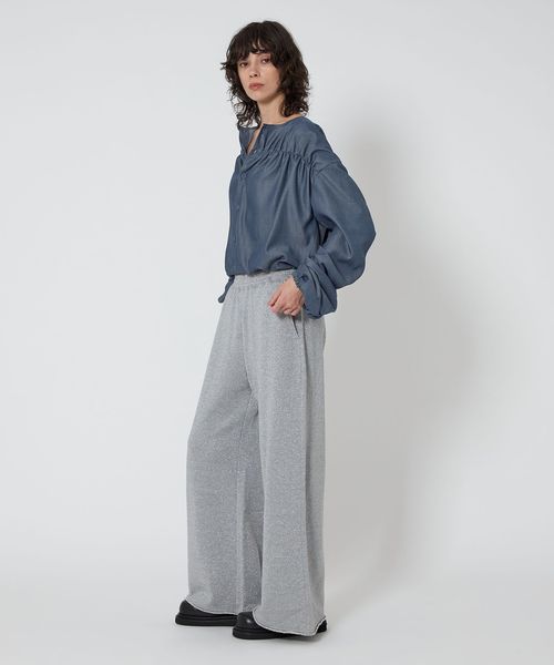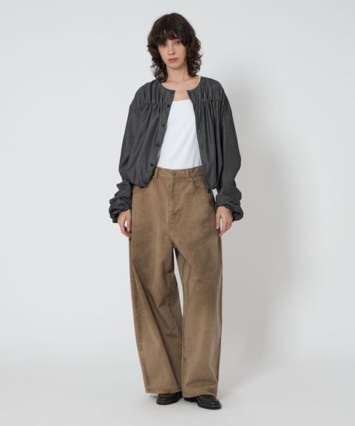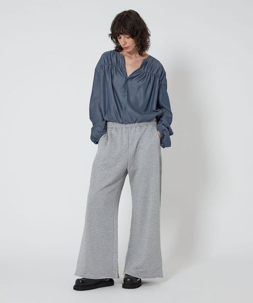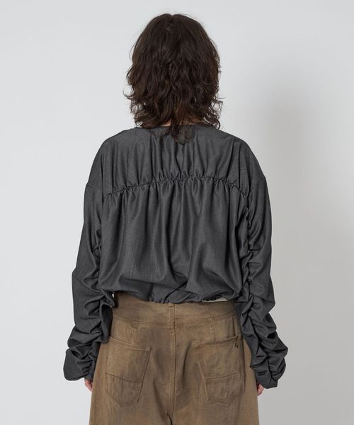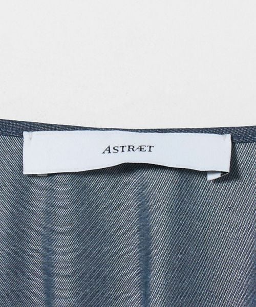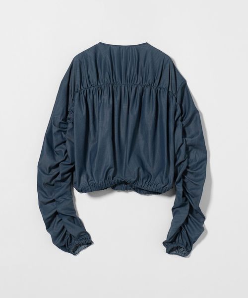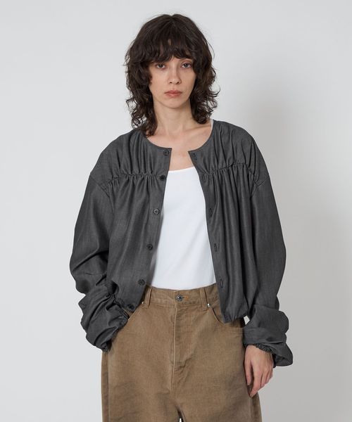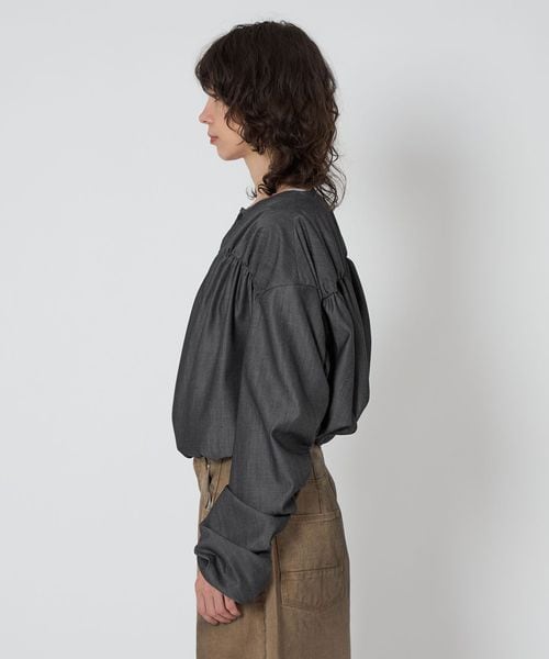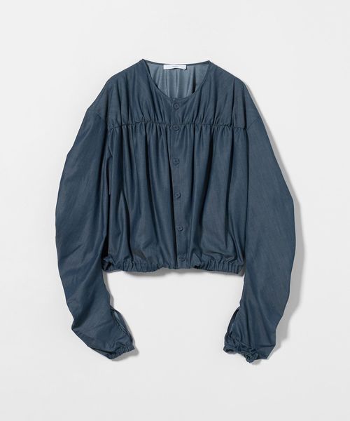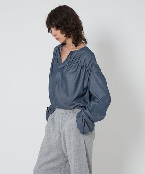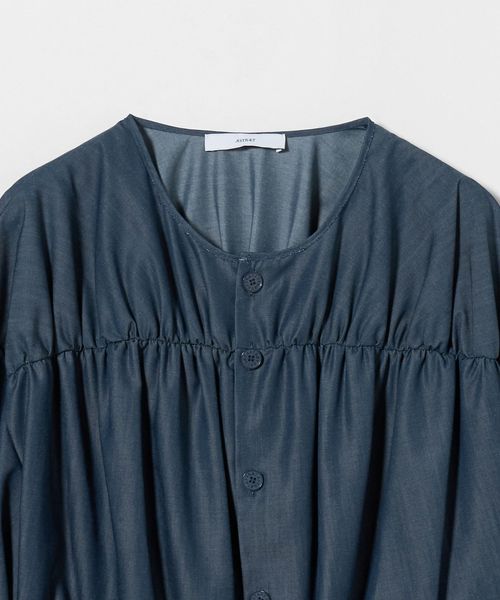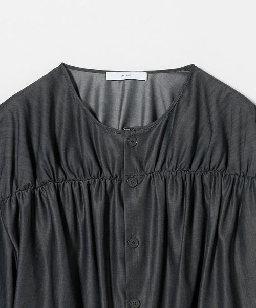 <ASTRAET>デニムライク ギャザー ノーカラーブラウス