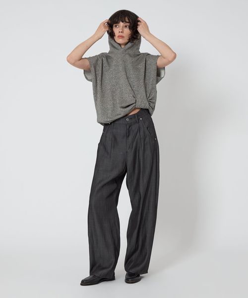 <ASTRAET>ラメ ウラケ フーデッド ノースリーブプルオーバー