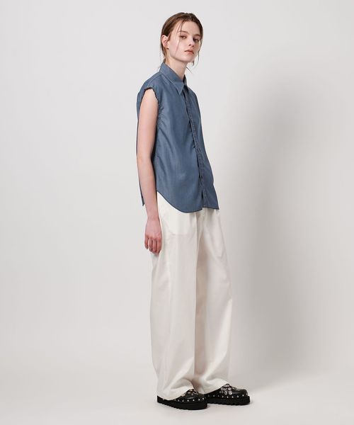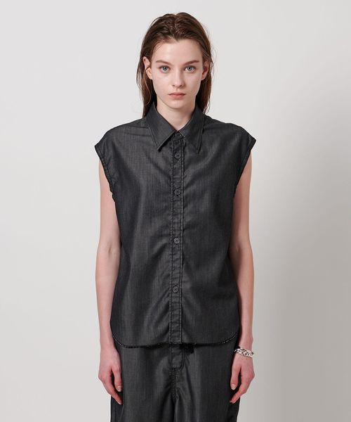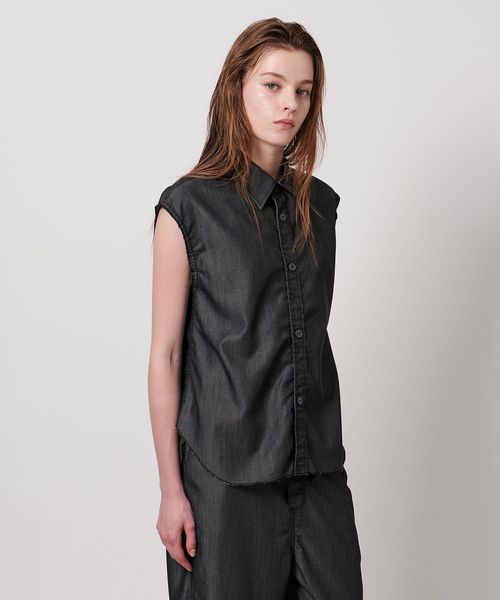 抜け感のある裁ち切り仕様のノースリーブレギュラーカラーシャツ。
