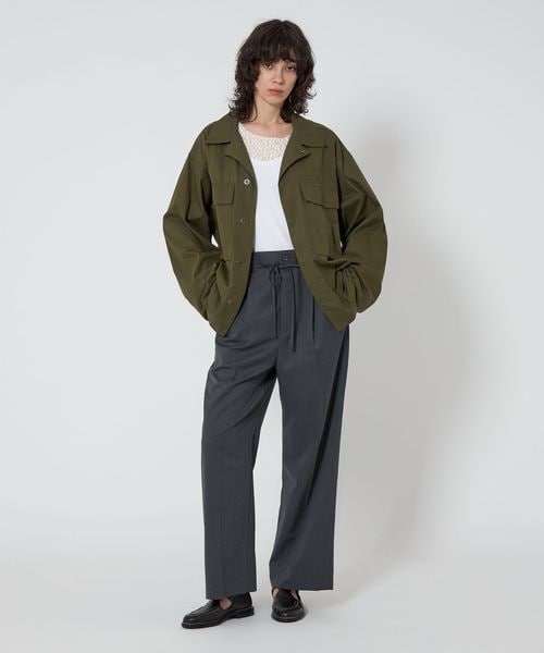 首まわり、袖口、裾はメロウ始末にして軽やかな素材を生かしたトップス。