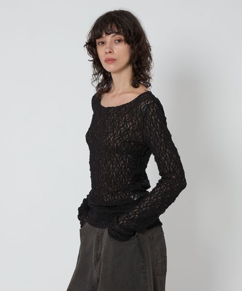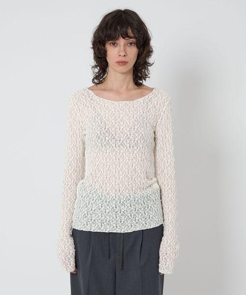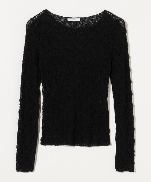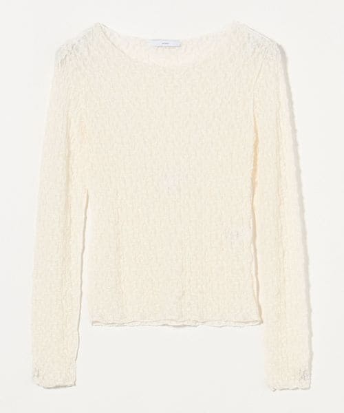 肌触りの良いさらっとした優しい風合いが特徴の甘く見えすぎないレース柄のカットソー。