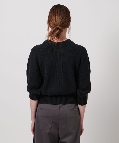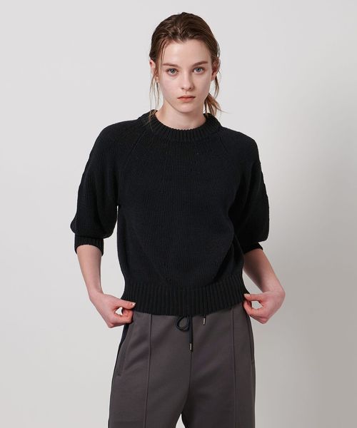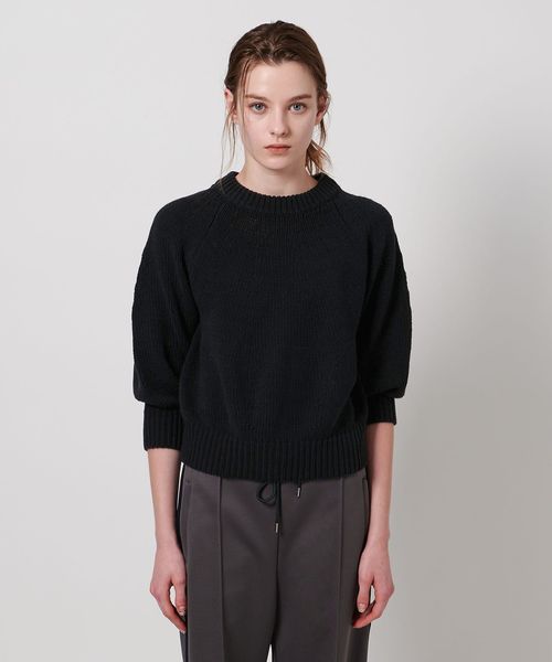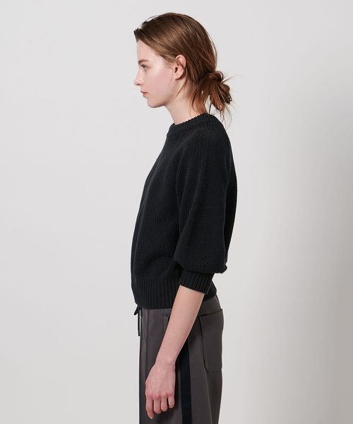ニットならではの減らし目をポイントに入れてエッグシルエットに仕上げたクルーネックニット。