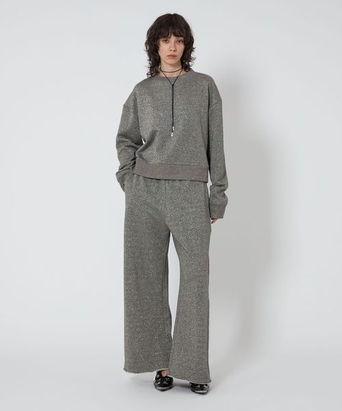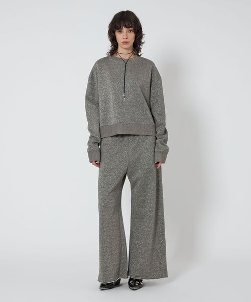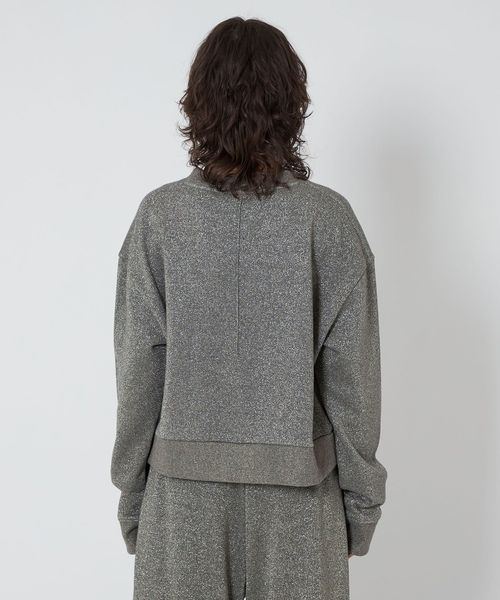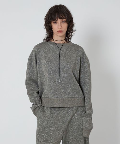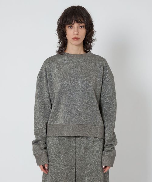 表面のラメが華やかさを演出してくれるショート丈のスウェット。